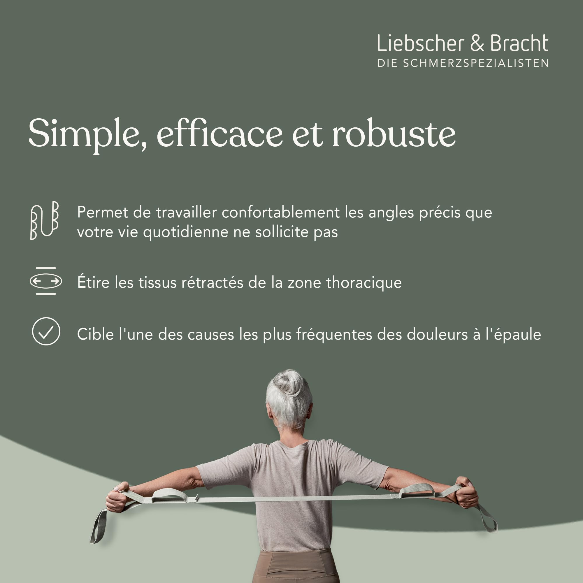 Vous recevrez les vidéos d'application assorties avec des explications précises et des exercices efficaces dans notre application Liebscher & Bracht Programme anti-épicondylite et épitrochléite : Soulager la douleur et Prévenir les récidives Noté /5: Achetez Liebscher & Bracht Original Schulterretter - Ceinture d'étirement avec passants pour s'entraîner facilement en cas de douleur d'épaule - Bande d'étirement en 100 % coton avec exercices inclus dans sur Livraison gratuite possible dès 25 € d'achat Ainsi, vous augmentez votre niveau d'entraînement étape par étape à votre rythme individuel Simple et durable : le sauveteur d'épaule s'appuie sur la cause la plus fréquente de douleurs à l'épaule et permet des exercices plus légers en cas de maladies sévères de l'épaule telles que l'épaule gelée, l'épaule calcaire, l'implosion ou l'arthrose Liebscher & Bracht Original Rückenretter Parfait pour les déplacements : enroulé, le sauveteur d'épaule se glisse facilement dans votre poche de veste, de sorte que vous pouvez l'emmener partout avec vous. Entraînez-vous avec l'épaule, étirez le tissu raccourci et augmentez ainsi progressivement la mobilité de vos articulations de l'épaule Tendinite Epaule Liebscher & Bracht Original Schulterretter Ceinture D'étirement Avec Marteau Reflexe Medical