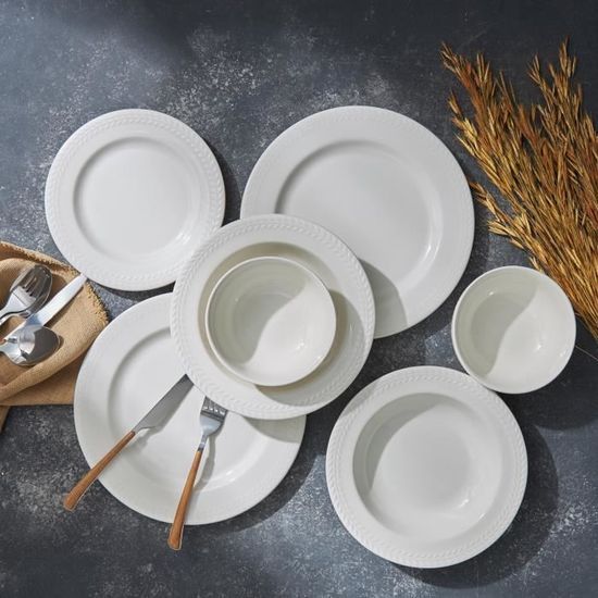 6 pièces : assiette de petit-déjeuner de 18 x 13 cm. Contenu du colis : 6 pièces : assiette plate 28 cm. Porland Service de table 18 pièces ethniques pour 6 personnes · 5,05,0 sur 5 étoiles (2) · 169,99 €169,99€Le plus bas : 169,99 €. Le plus bas Multiples utilisations : notre ensemble de vaisselle de 6 personnes est idéal pour restaurant, hôtel, banquet officiel ou tout simplement pour un usage quotidien Multiples utilisations : notre service de table pour 6 personnes est idéal pour un restaurant, un hôtel, un banquet formel ou tout simplement pour un usage quotidien. Porland Ethnical 18 Parça Servis Takımı Produit importé : fabriqué en Turquie. Cadeau idéal : cadeau de mariage, fête des mères, Noël, etc. Assiettes Plates Service De Table | Vaisselle, Complet, Pas Cher | Paris Prix Service Vaisselle 6 pièces : assiette plate 20 cm. Service de table Porland de Porcelaine, 18 pièces. Service de table complet pour 6 personnes., Marque : Porland.