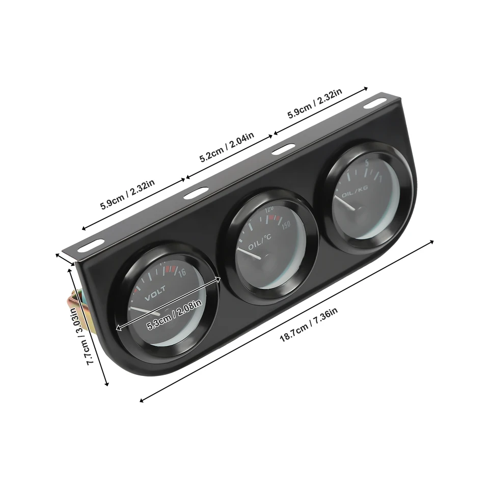 Offre une précision beaucoup plus grande et une plus grande distance de sécurité que les voyants d'affichage. Achetez Instruments supplémentaires LED 3 en 1 52 mm avec voltmètre 8-16 V, thermomètre à huile 50-150 °C et indicateur de pression d'huile 0-7 kg, boîtier en métal ABS pour montage universel de voiture, noir sur Les chiffres et les aiguilles indiquent clairement l'éclairage sur le cadran pour être facilement lisible dans l'obscurité. Dimensions : environ 18,7 x 7,7 x 5,2 cm. Contenu de l'emballage : 1 mètre de voiture 3 en 1 (voltmètre, jauge de température de l'huile, jauge de pression d'huile). Compte-tours Voiture 3 En 1 SURENHAP Indicateur De Température D'huile De Pointeur Jauge De Température D'Huile 52mm-2po Indicateur Moteur 12V Tableau Bord Haute sensibilité et utilisation facile - Contenu : 1 mètre de voiture 3 en 1 (voltmètre, jauge de température de l'huile, jauge de pression d'huile) - 1 lot de pièces pour l'installation. Diamètre de chaque diamètre : 52 mm., Tension : 12 V CC. Manomètre d'huile : 0 à 7 kg. Spécifications: Couleur : noir. Manomètre numérique | Indicateur de température d'... - Grandado Matériau : ABS + fer. Manomètre d'huile Automobile 12V, jauge de pre... – Grandado