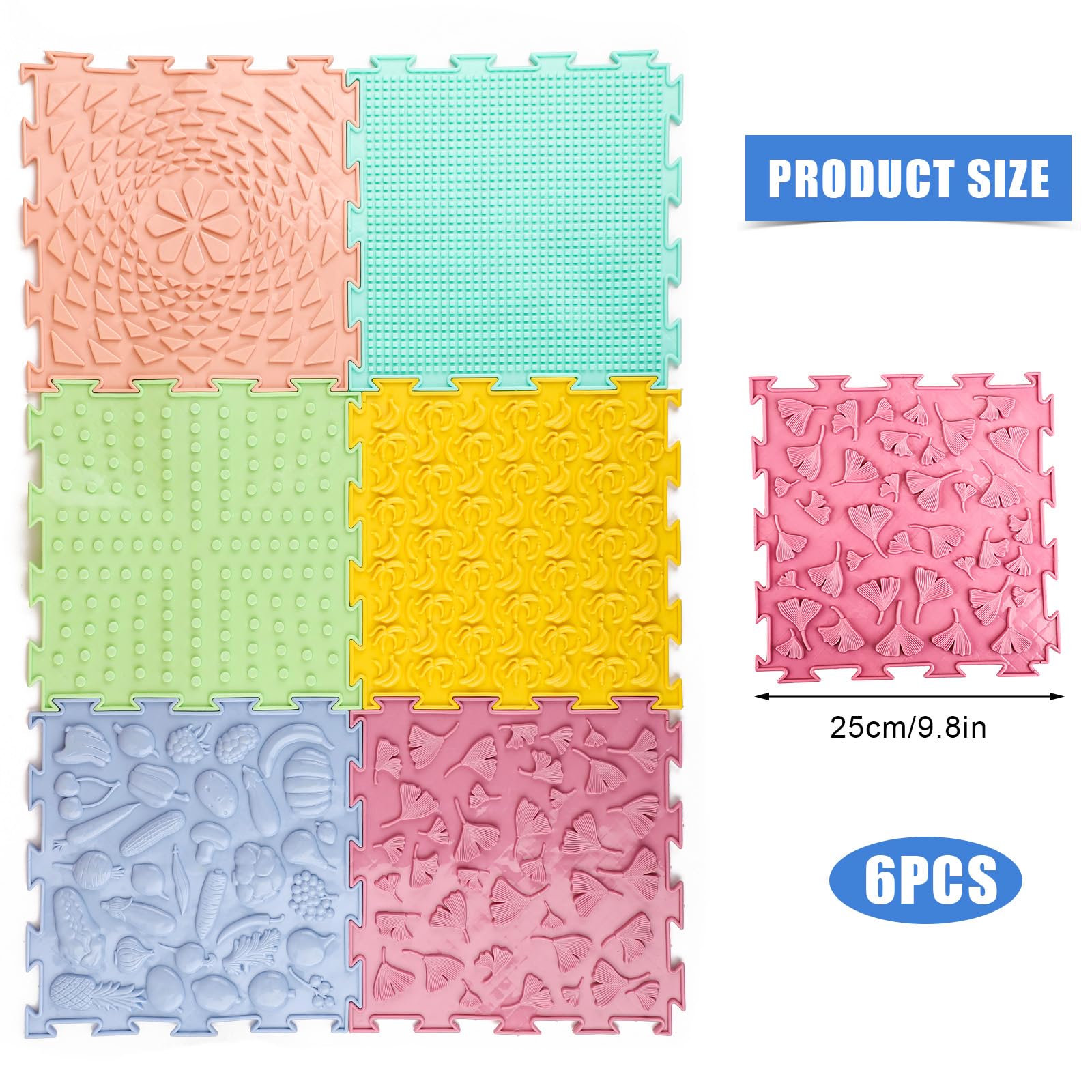 Facile à ranger : le tapis sensoriel est léger et empilable, peu encombrant, facile à transporter et à ranger et pratique à utiliser Les dalles sensorielles ! Les bébés adorent ! Les enfants adorent Lot de 6 tapis de sol sensoriels en silicone avec 6 motifs - Tapis de massage orthopédique - Tapis de jeu sensoriel pour la maison, la crèche, la maternelle 【Stimulation sensorielle】Ce tapis sensoriel est conçu avec six motifs en relief uniques. Les enfants peuvent percevoir différentes surfaces en touchant et en observant, ce qui favorise le développement de leurs capacités tactiles, visuelles et perceptuelles 2., Le tapis sensoriel est fabriqué en silicone de haute qualité, sûr et inodore, agréable au toucher, doux et durable, et ne se déforme pas ou ne se déchire pas facilement même après une utilisation répétée 3., Le tapis sensoriel dispose d'une structure imbriquée qui se combine facilement et à volonté pour former différentes formes, et convient à différents environnements tels que les salles de classe, les salles de jeux et la maison 4., Le tapis sensoriel est léger et empilable, peu encombrant, facile à transporter et à ranger et pratique à utiliser., 5., Le tapis sensoriel peut être utilisé à la maison, dans les jardins d'enfants, les crèches et d'autres endroits, offrant non seulement du plaisir aux enfants à jouer et à apprendre, mais aussi aux adultes qui peuvent soulager le stress et la fatigue Contenu de la livraison : 6 tapis de sol sensoriels puzzle de massage. Tapis de jeu sensoriel amusant : vous recevrez des tapis sensoriels avec six motifs en relief différents et une taille de 24 x 24 x 0,7 cm. Ils favorisent le développement sensoriel des enfants et répondent à différents besoins sensoriels Design imbriqué : le tapis sensoriel dispose d'une structure imbriquée qui se combine facilement et à volonté pour créer différentes formes, adapté à différents environnements tels que les salles de classe, les salles de jeux et la maison Description du produit Spécifications: Matériel: silicone Dimensions : 24 x 24 x 0,7 cm Caractéristiques : 1., Ce tapis sensoriel est conçu avec six motifs en relief uniques. Tapis Puzzle Sensoriel Relief Lot De 6 Tapis De Sol Antidérapants Et Imperméables Pour Tesla Model 3 2023 2022 2021 Accessoires 3d Pour Tesla Model 3 Tapis Sensoriel Silicone