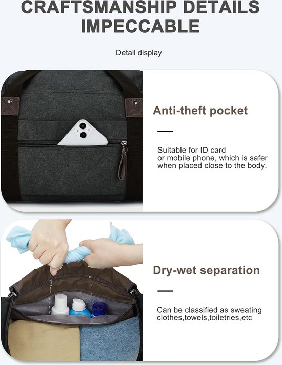 Le grand sac de voyage en toile est le choix ultime pour les hommes et les femmes à la recherche d'un compagnon de voyage polyvalent, durable et élégant. Sac Week End | Sac Weekend Homme – La Casa Du Cuir Un transport confortable est garanti avec des poignées cousues rondes, une bandoulière réglable et une sangle de valise pour une fixation facile aux bagages. La doublure intérieure moelleuse protège vos affaires et préserve leur état impeccable voyage après voyage. Masculin, épuré et ultra-fonctionnel — le partenaire idéal pour voyager avec style et praticité. Sac Avec Sangle Valise Sac De Voyage En Toile Grand Sac De Sport Sac De Week-End Hommes Femmes Avec Housse De Sac De Voyage à Roulettes 🧳 Volume Généreux pour les Longs Séjours : Avec ses dimensions de 62 x 29 x 33 cm extensibles jusqu'à 72 cm de longueur et sa capacité impressionnante de 70 litres, ce sac répond à tous vos besoins pour des vacances de 4 à 6 jours, voyages d'affaires prolongés ou équipements d'hiver volumineux. 🗂️ Compartiments Intelligents pour Voyageurs Exigeants : Chaque chose à sa place : chaussures, équipements électroniques, trousse de toilette., ., ., Les 7 poches incluent deux fermetures éclair latérales, une poche arrière zippée et un compartiment principal suffisamment spacieux pour accueillir vêtements épais et accessoires volumineux. Les coutures renforcées et les poignées rembourrées facilitent les longs trajets, tandis que les patins de protection en plastique préservent votre sac sur toutes les surfaces. Conçu pour les hommes qui voyagent sans compromis sur l'espace. Sac de voyage à roulettes haute résistance, 70 litres ⚡ Toile Haut de Gamme et Conception Renforcée : Confectionné en toile de coton résistante et rehaussé de ferrures bronze intemporelles, ce sac de voyage allie robustesse et raffinement. Lorsqu’il s’agit de choisir un sac de voyage homme, solidité, qualité mais aussi praticité, confort et style sont de rigueur. Tous ces ingrédients se retrouvent dans les modèles de sacs de voyage et valises homme que vous trouverez sur