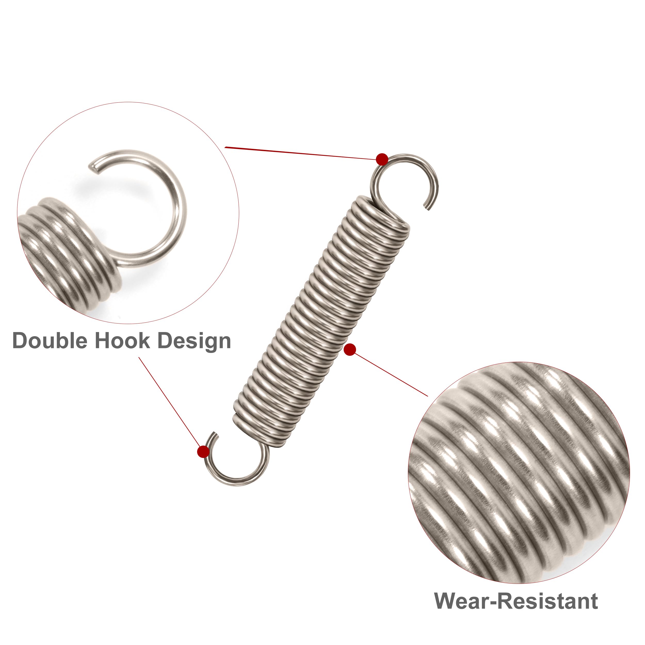 Design à double crochet : ressort de tension avec double crochet, facile à connecter avec des cordons, des sangles d'arrimage, des mousquetons et d'autres œillets Solide et respectueux de l'environnement : le ressort de tension est fabriqué en Fil de piano (SWP) importé du Japon et est conforme à la certification RoHS. Ressort à Crochets 180 Degrés 2pcs 65mm Ressort Double Crochet Ressorts De Traction, MoreChioce Ressorts En Acier Inoxydable Ressorts Pour Bricolage Tentes Mécanique -Ressort de tension à double crochet, se connecte facilement aux cordons, sangles de tension, mousquetons et autres œillets. Conception à double crochet: ressort de tension avec double crochet, se connecte facilement aux cordons de serrage, sangles de tension, mousquetons et autres œillets. Force maximale du ressort: environ 7,9KG(77,5N). Matrice Ressort, 18Mm Od 65Mm Long 2Pcs Spirale Estampage Légère Charge Compression Matrice... tahsis Tetiklemek yarın v tekerlek müzikal üretmek fırın Spécifications: Ressort de Traction avec crochet, diamètre du fil: 1,6 mm, diamètre extérieur: 10mm, longueur statique: 65mm,Angle de crochet à 180 Degrés 2 tours. Il présente une résistance élevée, une bonne élasticité et une longue durée de vie. -Idéal pour les projets de production, d'assemblage, d'expérimentation, de recherche, de développement et de maintenance.