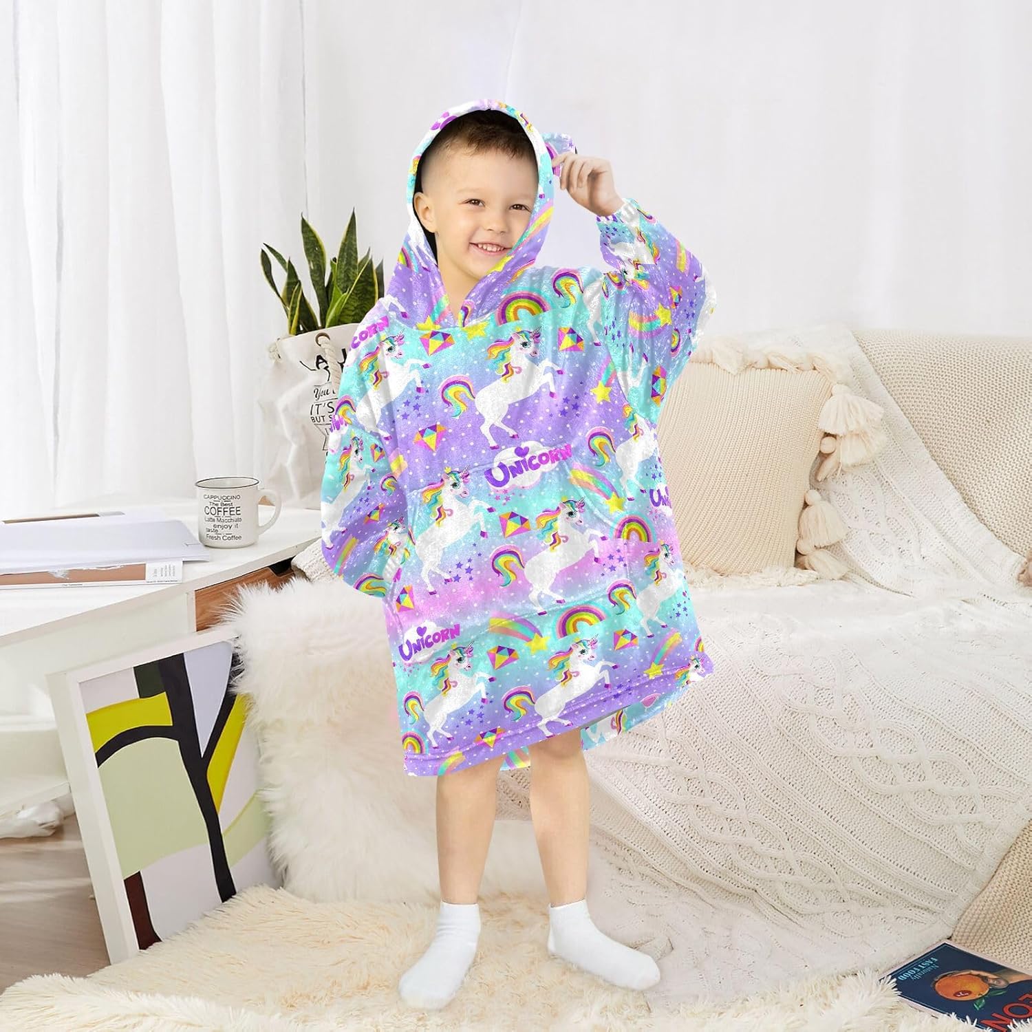 Licornes adorables mignonnes avec nuages et arc-en-ciel | Vecteur Gratuite Couverture Polaire Mnsruu Couverture à Capuche Surdimensionnée En Polaire Chaude Pour Enfants, Motif écailles De Sirène Arc-en-ciel, Pour Filles Et Garçons, Écailles De Sirène Arc-en-ciel., 3-6 Ans Sweat Couverture Les poignets élastiques aident à fixer les manches pour les garder confortables et au chaud quand ils jouent à la maison ou courent librement à l'extérieur. Notre couverture à capuche est lavable en machine et passe au sèche-linge à basse température. Choisissez la taille appropriée en fonction des besoins de votre enfant dans le tableau des tailles. Offrez à vos enfants une expérience confortable ultime avec notre sweat à capuche MCHIVER pour enfants. Design pratique : la grande poche est parfaite pour ranger tous leurs objets essentiels, et la capuche moelleuse ajoute une couche supplémentaire de chaleur et de style Couverture à capuche surdimensionnée pour enfants : ce sweat à capuche portable pour enfant est comme une couverture polaire surdimensionnée avec manches et poches. Matériau de qualité supérieure : fabriquée en tissu peluche double face de haute qualité, cette couverture à capuche confortable est douce, durable, et ne se décolore pas et ne perd pas ses poils. Le matériau super doux et doux pour la peau assure une sensation confortable et confortable, ce qui le rend parfait pour se détendre, faire la sieste ou les activités de plein air. Taille... Design confortable : notre couverture à capuche a une grande capuche pour une tête chaude, et la poche avant peut garder les mains des enfants au chaud et contenir des objets personnels. Cela signifie que votre couverture aura une odeur divine et aura l'air comme neuve quand vous le souhaitez.