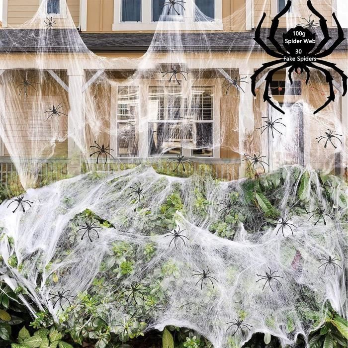 Avec des lumières ou des bougies, la toile se transforme en véritable repaire d’araignées. Toile d’Araignée Extensibles Décorations d'halloween avec 60 Araignées Ensemble de décoration de toile d'araignée d'Halloween, 200g de toile d'araignée en polyester extensible avec 30 fausses araignées, couvre 600 pieds carrés, parfait pour la décoration de fête d'Halloween intérieure et extérieure 🕷️ Kit complet avec 60 araignées – Le set comprend 200g de toile d’araignée et 60 araignées noires en plastique – une déco Halloween effrayante et prête à l’emploi. 20m² – idéal pour décorer portes, fenêtres, buissons ou meubles avec un effet hanté. Kit complet avec 60 araignées – Le set comprend 200g de toile d’araignée et 60 araignées noires en plastique – une déco Halloween effrayante et prête à l’emploi. 200g Toile d’araignée avec 60 araignées – Décoration... 👻 Souple & réutilisable – Matière flexible qui s’étire et se fixe facilement, sans résidus ni dommages sur les surfaces. Décoration de toile d'araignée pour Halloween Decoration Halloween Araignée Wzone 200g Toile D’araignée Avec 60 Araignées – Décoration Décoration Halloween Effrayante