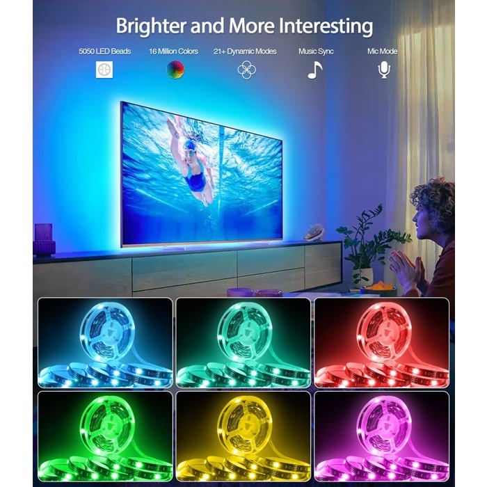 Assurez-vous que la section alimentée est près du port USB car elle est très collante., Meilleur plaisir visuel Décollez-le et collez-le sur une surface propre et sèche. Avec notre rétroéclairage TV, vous pouvez décorer où vous voulez, il sera magnifique et fera de la décoration DIY une expérience agréable et épanouissante ! Le rétroéclairage LED pour TV peut couvrir chaque côté des TV de 55-85 pouces ou 3 côtés des TV de 55-85 pouces. Un cadeau de soin des yeux parfait pour vous et votre famille. Découvrez notre nouvelle bande LED de 5 mètres, conçue pour votre téléviseur ! Équipée de LEDs SMD 5050 de haute qualité, elle offre une luminosité maximale pour une expérience visuelle vive. Contrôlez-la facilement avec l'application et la télécommande incluses. Garantie de 2 ans. Commandez maintenant pour une ambiance unique lors de vos films et séries préférés !Connexion... Led Television Sync Image Bande De Rétroéclairage LED Pour Réparation TV, Barres De Ambilight Pc Vous pouvez la plier en deux sans la couper, très facile à utiliser!!! Bande LED 5050 RGB Lumiere LED SMD Multicolore LED Chambre avec Télécommande à Infrarouge 44 Touches 12V 3A, pour Chambre, Cuisine, Halloween, Noël, Fête Décor Spécifications : Longueur : 5M, Taille du paquet : 16., 5 x 16., 2 x 2cm Cette version n'est pas étanche, elle est extrêmement résistante à la chaleur, elle peut être touchée et est sans danger pour les enfants., Effet cinéma Ruban LED, 20M Flexible RGB Bande LED Decoration Chambre, Bluetooth App Contrôle Synchroniser avec Rythme de Musique, Led Chambre pour Gaming Room, Plafond, Mariage, Fête, Cuisine, TV, Bureau | Votre wishlist sur Ruban LED TV 5M, Bande LED Avec Télécommande APP, Synchroniser avec Rythme de Musique, pour 65"-75" TV, PC Fête, etc [Classe énergétique A Application largement utilisée Branchez-le directement sur le port USB d'un téléviseur, d'un PC, d'une tablette, d'un ordinateur portable, d'un chargeur mural, d'une banque d'alimentation ou d'autres dispositifs USB 5V pour l'alimenter., Facile à installer Sécurité d'utilisation Choisissons la marque Sunity pour vous apporter une nouvelle expérience utilisateur et vous éviter ces problèmes. Magnifique petite addition à l'arrière de la télévision, illumine votre télévision lorsque vous regardez des films / émissions dans l'obscurité, fournit une atmosphère romantique et relaxante. 1 * Télécommande à 44 boutons , 4 * Clips de câble , 1 * Manuel d'utilisation