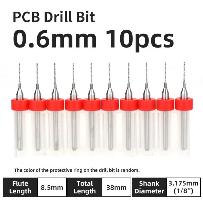 Contenu de l'emballage : 10 forets PCB. Set de 10 forets en carbure de tungstène pour PCB, diamètres variés (0.3mm à 1.3mm). Tranchant précis, évacuation efficace des copeaux * L'espace de décharge des déchets de plate-forme de forage est grand, la résistance est petite et la décharge des débris est stable. Matériau en carbure : fabriqué en acier au carbure de haute qualité, cet ensemble de forets est conçu pour la résistance et la longévité, une performance fiable sur divers matériaux, y compris l'acrylique et les métaux. Applications : pour une utilisation dans l'électronique, l'artisanat ou les projets d'amélioration de la maison, ces forets peuvent s'attaquer à une large gamme de matériaux sans effort. Capacités de perçage précises : chacun des 10 embouts inclus est conçu dans un esprit, offrant des points d'entrée et de sortie fluides sur vos projets sans causer de dommages ou d'éclats. * Longue durée de vie, 2000 à 5 000 forets peuvent être percés dans des conditions de travail normales, et 4 à 5 fois peuvent être rectifiées. Coffret de 19 forets acier au Cobalt Schill-Reservoir TP * Tailles disponibles : 0,1 mm, 0,2 mm, 0,3 mm, 0,4 mm, 0,5 mm, 0,6 mm, 0,7 mm, 0,8 mm, 0,9 mm, 1,0 mm. * Conception d'étalonnage de l'anneau pour améliorer l'efficacité du travail. * Dimensions de l'emballage : 88 x 53 x 10 mm. L'utilisation de matériaux de haute qualité et le processus de meulage fin rendent le foret plus tranchant, réduit la force de coupe et le foret cassé, améliore la qualité du trou mural. Voir plus de détails Vous avez des questions à propos des informations du produit en français? Contactez-nous Signaler un problème avec ce produit Forets Carbure Précis 10pcs Forets De Carte PCB Drill Bits De Carbure Circuit Imprimé 0.1mm À 1.4mm Outil De Perceuse (0.3mm Forets PCB Carbure Tungstène Couleur : conforme à l'image., *Matériau : carbure.