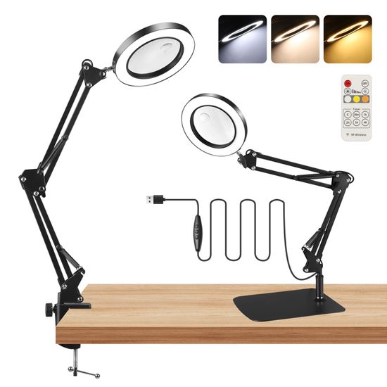 Vous pouvez ainsi travailler confortablement et sans vertiges, même pendant de longues périodes, tout en bénéficiant de la clarté et du confort nécessaires aux projets complexes. Convient pour : Couture, loisirs créatifs, réparations, nail art, micro-peinture, perlage, broderie, création de bijoux, etc. Avantages : Couleurs de lumière réglables Grâce aux 5 couleurs de lumière réglables, l'utilisateur peut choisir la température de couleur la plus adaptée à ses besoins, améliorant ainsi sa visibilité et réduisant la fatigue oculaire. Elle est idéale pour les travaux de précision tels que l'artisanat, les réparations, le nail art, la peinture miniature, le perlage, le montage de mouches, la couture, etc. Base robuste et stable : Notre loupe avec éclairage et support est dotée d'une base métallique ronde de 17,7 cm avec rembourrage antidérapant, offrant une excellente stabilité et une protection contre les chutes. Loupe Sur Pied Mapille 10X Loupe Avec Lumière Et Support, LED Lampe De | FindTheDeal Lampe Loupe Led Évitez de transporter des loupes lourdes, inconfortables et encombrantes sur votre établi, votre table ou votre bureau. Son design fin s'intègre facilement dans les espaces restreints sans prendre trop de place et peut même supporter de petits objets empilés dessus. Idéal pour les travaux de précision La lumière réglable et le grossissement en font un outil idéal pour les travaux de précision, garantissant précision et efficacité. Contrairement aux lampes loupes traditionnelles dotées d'interrupteurs sur cordon d'alimentation encombrants, notre bouton facile d'accès sur la tête de la lampe vous permet de contrôler la lumière d'un simple toucher. Cette loupe pour lampe de lecture dispose d'un col de cygne flexible, d'une mémoire intelligente avec cinq modes de couleur et d'une gradation continue. Son clip breveté pivote facilement pour une installation rapide sur votre espace de travail Description du produit Spécifications : Produit : Loupe avec lumière réglable Matériaux : Verre, plastique, métal Couleur : Noir Grossissement : 10X Couleurs de lumière : 5 couleurs réglables Luminosité : Réglable, 5 %-100 % Température de couleur : 3000 K-6500 K Puissance : 12 W Orientation : Rotation à 360° Utilisation : Non rechargeable, doit être connecté à une source d'alimentation. Applications polyvalentes Convient à un large éventail d'activités, notamment la couture, les loisirs créatifs, les réparations, le nail art, la micro-peinture, le perlage, la couture, la broderie et la création de bijoux, ce qui en fait un outil polyvalent pour divers loisirs et professions. Bouton de commande pour une utilisation simplifiée : Notre lampe loupe de bureau est dotée d'un bouton de commande amélioré pour un confort optimal. Orientation rotative à 360° La lampe rotative à 360° permet un positionnement flexible, permettant d'orienter la lumière exactement là où elle est nécessaire. Mapille 10X Loupe avec lumière et Support, LED Lampe de Bureau avec 5 Températures Couleur, Lampe loupe à intensité Variable, 360° Loupe pour la Lecture Les Personnes âgées Les Loisirs l'artisanat Loupe x10 avec lumière et support, lampe de sol Drdefi 3 en 1 réglable Éclairage réglable : Améliorez votre espace de travail grâce à notre lampe loupe.