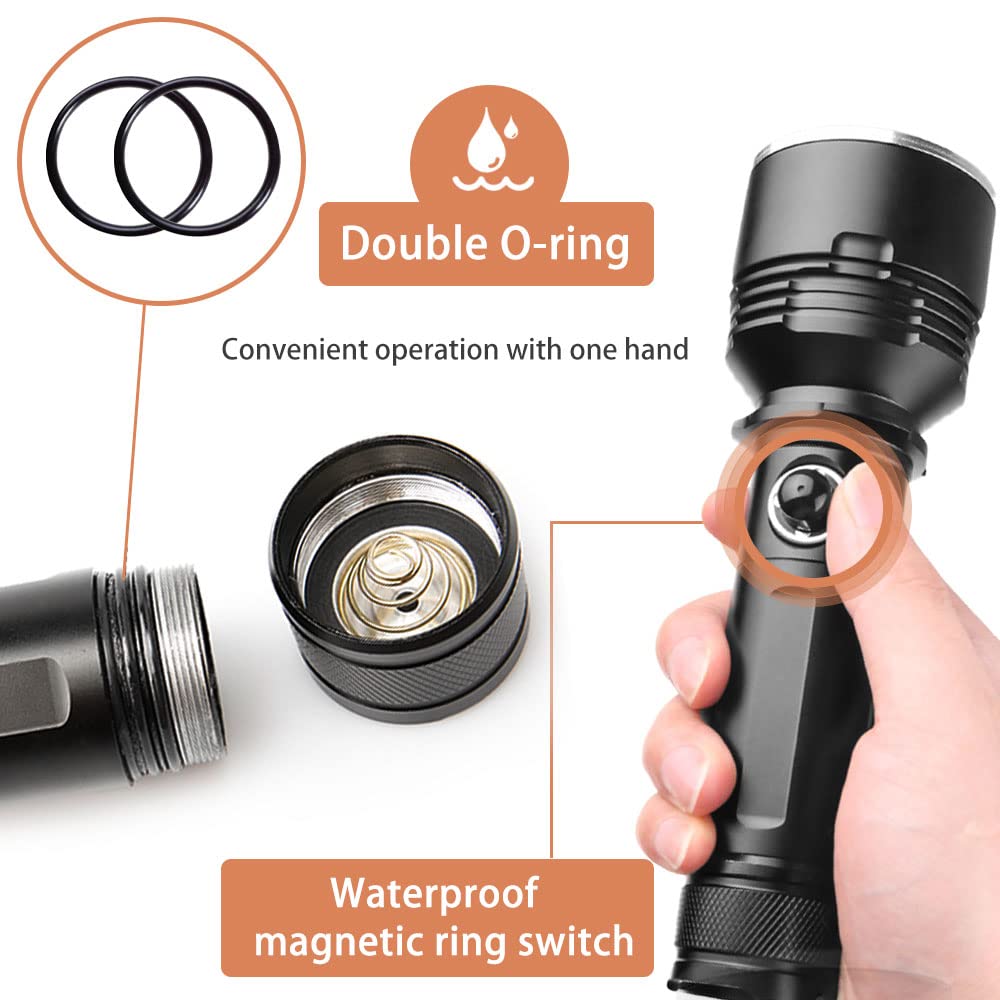Spécification : Condition : 100 % tout neuf Source de lumière: 6 lumière blanche 9090 XML2, 4 rouge R5, 4 bleu R5 Tension de fonctionnement : 3,7 V Équipement blanc : haut, moyen, bas, appui long pendant 2 secondes Décrochages rouges et bleus : rouge, rouge, bleu, double-clic sur le flash rouge, appuyez longuement sur 2 secondes d'arrêt Température de couleur blanche : 6 000 k Longueur d'onde de la lumière rouge : 620 nm Longueur d'onde de la lumière bleue : 455 nm Lumineux: jusqu'à 28800 lumineux Portée : 300-500 mètres Angle de faisceau : 120 degrés Spécifications de la batterie : 4 x batterie (ne pas inclure la batterie) Indice d'étanchéité : IPX8 Profondeur de plongée : 80 mètres sous l'eau Taille: 12,2 x 6,5 x 5,5 cm / 4,80 x 2,56 x 2,17 pouces (environ) Emballé inclus : 1 x lampe de poche de plongée à LED (avec vis) 1 x support pour lampe de poche Avis : Veuillez noter que la batterie n'est pas incluse. Haute puissance et longue portée : avec 28800 lumens, cette lampe torche LED atteint jusqu'à 500 m, idéale pour capturer des photos ou des vidéos vives pendant la plongée de nuit ou l'exploration de grottes Veuillez ne pas le démonter par vous-même avec désinvolture. 【MULTI-MODE】 Cette lampe de poche a deux interrupteurs, ce qui est plus pratique à utiliser. ?【SERVICE APRÈS-VENTE SANS SOUCIS】 Si vous rencontrez des problèmes, n'hésitez pas à nous contacter, nous vous fournirons une garantie de satisfaction à 100% de 30 jours. Lampe Sous Marine Lampe De Plongée à LED Magicshine MJ-878, Rechargeable | Achetez à Prix Avantageux Chez Torche LED Puissante 28800 Lumens Après l'avoir utilisé à chaque fois, enlevez le sel, faites-le tremper dans de l'eau environ 30 à 50 minutes et appuyez sur l'interrupteur sous l'eau aussi souvent que possible, puis essuyez-le avec un chiffon sec et séchez-le. 【MULTI-USAGE】 La lampe de poche de plongée peut non seulement être utilisée sous l'eau, mais peut également être utilisée comme éclairage de remplissage photographique pour une prise de vue facile, jusqu'à 300-500 m de distance, vous aidant à obtenir des images ou des vidéos plus claires et plus vives. Convient pour la plongée en plein air, la plongée souterraine, la plongée sur épave et les lampes de marche. Après chaque utilisation, veuillez le à temps. GUSTAR Lampes de Plongée, Torche de Plongée à LED avec 【EXCELLENTE CONCEPTION】 La torche de plongée LED a des performances d'étanchéité exceptionnelles, une conception étanche à filetage profond, une profondeur d'eau jusqu'à 80 m, de sorte que vous pouvez l'utiliser sous l'eau avec plus de tranquillité d'esprit. La catégorie des lampes torche de plongée est un ensemble de lampes spécialement conçues pour les plongeurs qui ont besoin d'une source lumineuse fiable et puissante lorsqu'ils explorent les profondeurs sous-marines. Les lampes torche de plongée sont généralement étanches à des profondeurs allant de 50 à 200 mètres et sont fabriquées à partir de matériaux résistants à la...