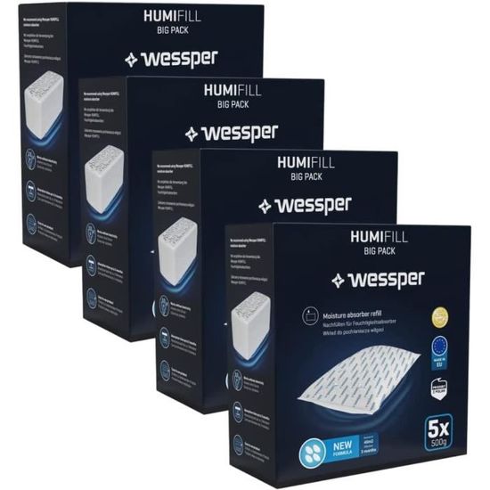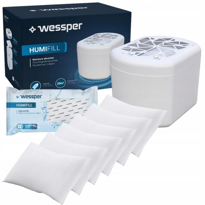 Kit complémentaire - ce kit contient des granulés de recharges universels qui peuvent être utilisés dans n'importe quel absorbeur d'humidité disponible dans le commerce Absorbeur d'Humidité 1 Recharge 800 g SEKOFIRST Raccordement universel Les kits de recharge HUMIFILL de Wessper ont la particularité de s'adapter à tous les réservoirs. Efficacité - Chaque coussin du déshumidificateur peut déshumidifier une pièce de 20 m² pendant 3 mois, améliorant ainsi le climat intérieur et contribuant au bien-être Sans électricité - Parce que nous nous soucions de l'environnement, nos kits de anti humidite maison fonctionnent sans électrique , ce qui permet d'économiser de l'énergie et peut être utilisé dans n'importe quelle pièce Qualité - Les cartouches de absorbeur d humidite de haute qualité sont sans danger pour les humains et les animaux domestiques, sont inodores et protègent contre les odeurs de moisi dans les pièces concernées Ils régulent naturellement l'humidité dans de nombreuses pièces, préviennent les moisissures et la corrosion et réduisent l'évaporation des miroirs et du verre. Absorbeur d'humidité médium + 1 recharge galet 500g - Jardiland Il réduit l'évaporation sur les miroirs ou le verre et empêche la formation de moisissures Sans électricité Parce que nous sommes soucieux de l'environnement, nos kits de recharge pour déshumidificateurs fonctionnent sans électricité et permettent donc d'économiser de l'énergie. Déshumidificateur - avec un humidite, vous pouvez fournir de l'air sec dans différentes pièces (salon, salle de bain, cuisine, cave, bureau) ou dans votre voiture. AbsoDry Duo Family - Déshumidificateur d'air anti moisissure non électrique - Absorbeur d'humidité - Pour une meilleure qualité de l'air - Anti humidité... Absorbeur D’humidité Recharge 4X Recharge Granulés Sachet 400G Absorbeur D'humidité Déshumidificateur D'Air Anti Humidité Maison Cave Nos packs supplémentaires contribuent à maintenir des conditions ambiantes confortables et à assurer un climat agréable dans chaque pièce avec un taux d'humidité idéal.