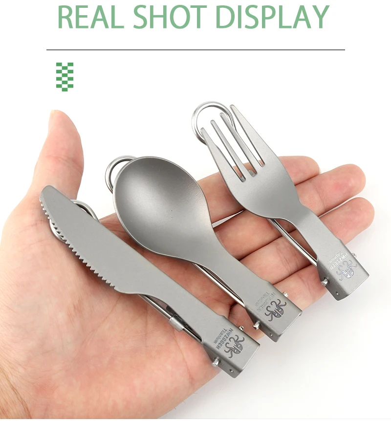 Contenu : 1 cuillère-fourchette en titane Caractéristiques : Matériau : titane., Longueur : environ 17,3 cm., Poids approximatif : 13 g. Le titane pur ne donnera pas d'odeur ou de goût aux aliments, et est fiable. Odoland Lot de 6 ustensiles de cuisine de camping avec casserole légère, poêle, cuillère Convient pour la maison, le pique-nique, le camping, la randonnée, etc. Fabriqué en titane, léger et résistant à la corrosion. Le titane pur ne donnera pas d'odeur ou de goût aux aliments, et est fiable. Poignée antidérapante pour une prise en main ferme. Convient pour la maison, le pique-nique, le camping, la randonnée, etc. Voir plus de détails Signaler un problème avec ce produit Boundless Voyage Titanium Spirit Alcohol Stove Boundless Voyage Cuillère- fourchette Pliable En Titane Ultra Légère Pour Pique-nique, Camping, Randonnée, école, Bureau, Extérieur Et Intérieur, Seulement 17,5 G Ti1022T Spork Titanium Léger et portable : la taille de la fourchette est de 220 x 40 x 40 mm. Seulement 16 g chacun. Vous pouvez les essuyer et ou les rincer l'eau froide car le...