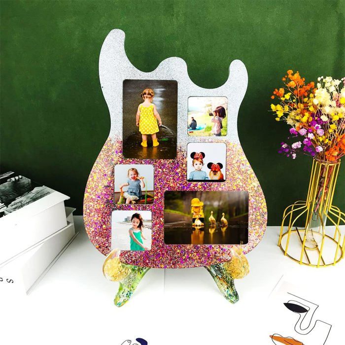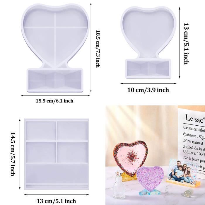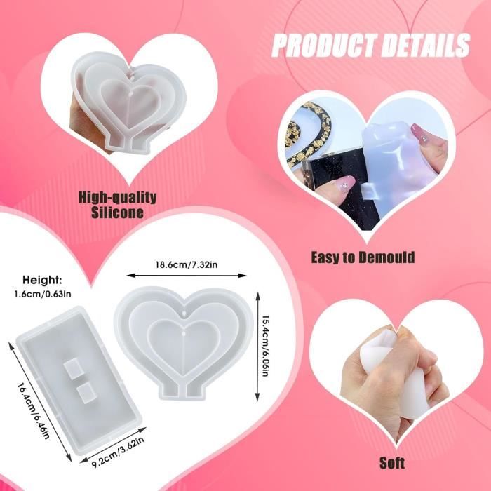 Moule Résine Époxy En Silicone Pour Faire Cadre Photo Forme De Coeur En Resine Cadeau Decoration Personnalise Artisanal Diy Noel Anniversaire Mariage Saint Valentin Couple Avec Chaine Perles Colorees