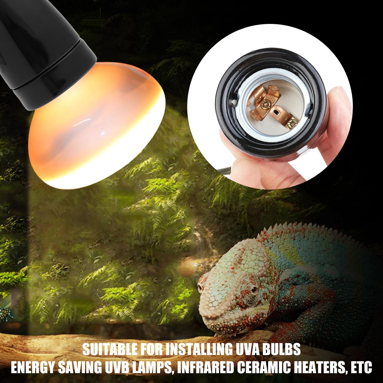En outre, la tête de la lampe peut être tournée de 180° vers le haut et vers le bas pour répondre à différents besoins d'éclairage, parfait pour les tortues, les lézards et autres animaux dans le terrarium ou l'aquarium. Avec un câble d'interrupteur pratique, la lampe peut être allumée et éteinte en toute sécurité. Elle est parfaite pour les terrariums et les aquariums et fournit une source de chaleur constante pour vos reptiles et amphibiens. Idéal pour une utilisation dans les habitats de reptiles et pour fournir à vos animaux de compagnie la chaleur et les rayons UV nécessaires. Les mesures étant prises à la main, les tailles indiquées peuvent donc varier légèrement. Douille de lampe E27 Amélia finition chrome blanc - format XL Matériaux de qualité supérieure pour une longue durée de vie : la base de la lampe chauffante est fabriquée en céramique résistante aux hautes températures, tandis que la base est en cuivre pur. Ces matériaux garantissent une grande stabilité, une excellente résistance à la chaleur et une longue durée de vie. Douille en céramique E27 - Rouge Chauffage Pour Tortues Lézards 2 Pièces Lampe Chauffante Terrarium,50W Lampe Chauffante Pour Reptiles,lampe Chauffante En Céramique,céramique Heat Emitter Pour Reptiles, Lézard | Leroy Merlin Support Lampe Rotatif Reptiles 【Angle d'éclairage flexible pour reptiles】La douille de lampe chauffante est équipée d'une rotation à 360° qui vous permet d'ajuster la tête de la lampe de manière flexible pour aligner avec précision l'éclairage dans l'habitat des reptiles ou des amphibiens. Idéal pour aquarium, terrarium et autres habitats de reptiles, ce support de lampe chauffant fournit une source de chaleur stable et sûre qui garde vos animaux en bonne santé. Cette gamme de douilles E27 céramiques va vous permmettre d'utiliser des ampoules à culot E27 puissantes diffusant de fortes températures. Vous pouvez aussi sélectionner l'aspect céramique ou porcelaine pour le côté vintage ou rétro Dimensions de l'ampoule : 5 x 5 x 5 cm. L'interrupteur dans le câble vous permet de contrôler la température sans avoir à toucher directement la lampe, ce qui est particulièrement bénéfique pour les animaux domestiques dans les aquariums ou les terrariums. Heiz Douille de lampe E27, en céramique, avec câble d'interrupteur et 2 ampoules (50 W/75 W), support de lampe pour reptiles, rotatif à 360°, lampe chauffante en céramique pour aquarium, reptiles - La douille de lampe chauffante avec douille en céramique E27 est la solution parfaite pour l'entretien de vos reptiles et amphibiens. En combinaison avec une lampe UVB ou UVA, la douille fournit le rayonnement nécessaire pour soutenir la digestion et le métabolisme du calcium, ce qui favorise la santé de vos animaux.