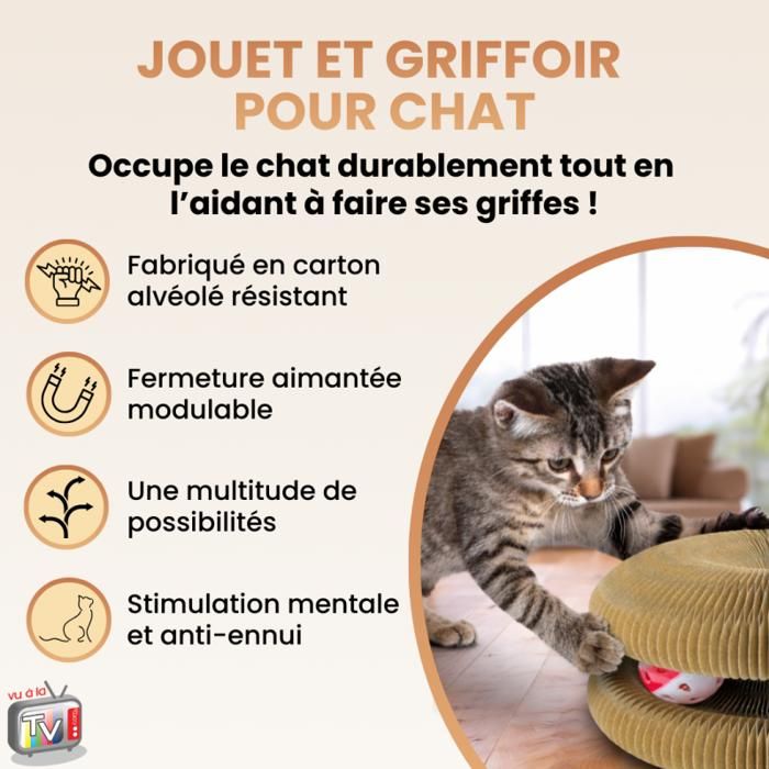 CONCEPTION INTERACTIVE: Griffoir en carton ondulé avec balle et clochette intégrées pour stimuler l'instinct de jeu de votre chat Le griffoir aide à préserver vos meubles en offrant à votre chat une alternative attrayante pour faire ses griffes. Griffoir Pour Chat - Carton Ondulé Scratcher Toys - Animalerie Griffoir Pour Chat,Bol En Griffoir Carton Chat Ovale 2 En 1,Tapis... MULTIFONCTIONNEL: Sert à la fois de zone de griffage pour l'entretien des griffes et d'aire de jeu divertissante Griffoir Pour Chat - Carton Ondulé Scratcher Toys - Animalerie PRATIQUE ET COMPACT: Structure pliable permettant un rangement facile et un transport sans encombrement ENRICHISSEMENT FÉLIN: Favorise l'exercice physique et le bien-être mental de votre chat tout en protégeant vos meubles Griffoir Pour Chat En Carton Ondulé Affûteur De Griffes Jeu Friandise Chat Un accessoire essentiel pour le bien-être de votre compagnon, combinant utilité et amusement dans un design pratique et attrayant. Fabriqué en carton ondulé robuste, ce griffoir pliable offre à votre félin un espace dédié pour satisfaire son instinct naturel de grattage. Sa conception intelligente permet de le déplacer facilement dans votre intérieur et de le ranger lorsqu'il n'est pas utilisé.