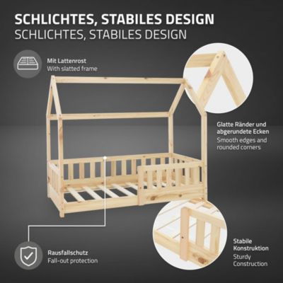 Personnalisez le lit pour la personnalité de votre tout-petit. Les possibilités sont infinies pour créer un environnement ludique où l'imagination de votre enfant peut s'épanouir. ️ Le lit en bois est idéal pour draper le tissu, accrocher des jouets ou accrocher des guirlandes lumineuses. Votre tout-petit grandit rapidement et sera bientôt trop grand pour son lit de bébé. Il s'agit d'un produit écologique. Ce lit en bois offre à votre enfant beaucoup d'espace pour se reposer après une journée d'événements et rêver doux. Grâce à sa faible hauteur et à sa forme de maison confortable, le lit convient non seulement comme lieu de couchage, mais aussi comme coin de lecture ou maison de jeu Test du lit Montessori blanc en bois de pin pour enfant : sécurité et Offrez-lui un nouvel espace de couchage pour les filles et les garçons avec notre lit en pin qui offre beaucoup d'espace pour s'allonger et la sécurité et la sécurité. Écologique et décoratif en même temps La structure ouverte sans grille laisse beaucoup d'espace pour faciliter l'entrée et la sortie du lit. Hauteur de la balustrade : 30 cm. Lit Maison Pin Massif 100x190 Cm Lit Pour Enfant En Bois De Pin Avec Balustrades De Sécurité Et Sommier Lit 100x190 Cm Balustrade Sécurité Basse Lits pour enfants en contreplaqué de pin. Sécurité, confort et design naturel. Meubles durables et esthétiques pour des chambres pleines de chaleur Il est donc non seulement beau, mais aussi respectueux de l'environnement. Super pour vos petits. La structure solide et stable du lit a une capacité de charge de 120 kg, ce qui permet à un adulte de dormir tranquillement avec son enfant. Lit maison en bois de pin pour enfants – garçons et filles. Modèle sans barre supérieure avant - le plus sûr pour les enfants. ️ Le cadre de lit est fabriqué à la main en bois de pin dans sa couleur naturelle, ce qui est un ajout élégant à toute chambre d'enfant.