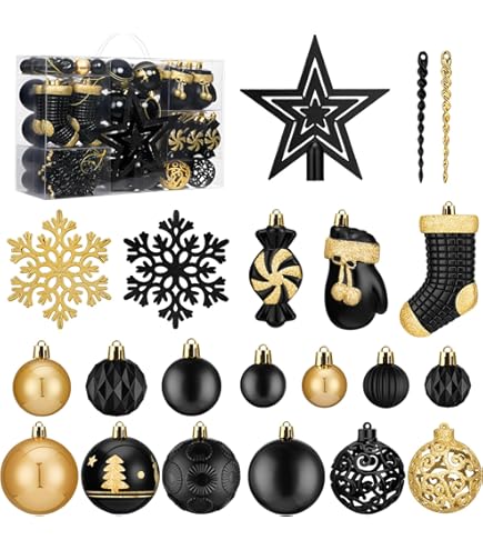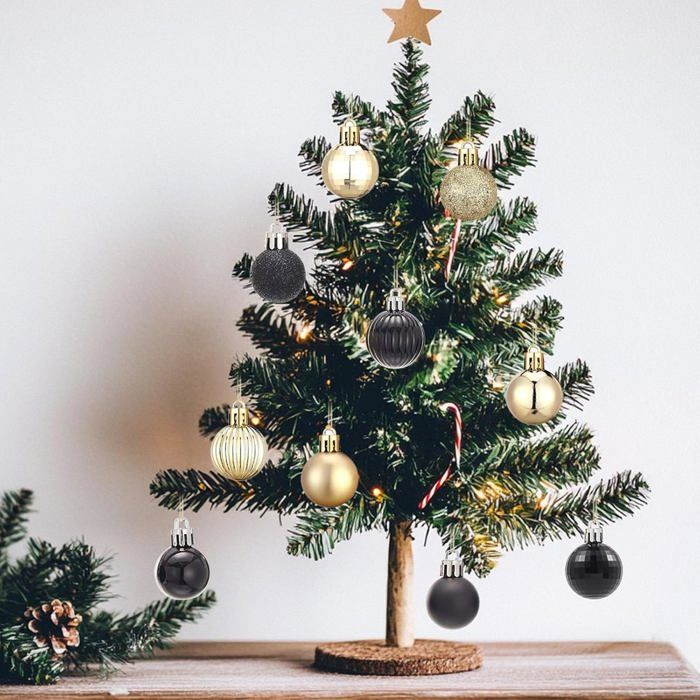 Les pendentifs brillants de sapin de Noël ajoutent un éclat festif à votre maison. Nos boules de Noël sont fabriquées en plastique de qualité supérieure. Boules en plastique de qualité supérieure : nos boules de Noël en plastique incassable convainquent par leur durabilité. Boules de Noël résistantes aux intempéries pour décoration intérieure et extérieure. Boules de Noël parfaites de 3 cm avec rubans de suspension pratiques - Idéal pour la décoration de sapin de Noël. Ochine Lot de 49 boules de Noël à suspendre – Mini boules de Alternative élégante aux décorations traditionnelles de sapin de Noël. Accessoires de Noël de qualité supérieure : les boules de Noël GESDYO convainquent par leur finition de qualité supérieure. Chaque boule de 3cm est livrée avec son crochet, super facile à accrocher. En plastique haute qualité, elles ne cassent pas si elles tombent (idéal avec les... Decorations Sapin Plastique Boules Plastique 30-60mm 102 Pièces - Boules Noires Et Or Sapin Avec étoile Et Renne Kit Décoration Noël Boules De Noel Décoration instantanée pratique : avec des rubans de suspension intégrés, prêt à l'emploi. Pour une présentation variée de Noël, mariage, fiançailles, anniversaire, fête, comme des ornements suspendus sur des branches, des centres de table, autour des balustrades Caractéristiques du produit : Nom : décoration à suspendre. Lot De 49 Boules De Noël En Plastique Incassable Avec Crochet De Suspension - 3 Cm - Doré/Noir - Décoration De Sapin De Or Noir. ; Livraison gratuite. i ; i Ensemble de 49 pièces de qualité supérieure : pendentifs de sapin de Noël incassables au design élégant doré et noir. Parfait pour la décoration de boules d'arbre, les festivals, les fêtes ou comme cadeau. GESDYO 49 décorations de sapin de Noël et de fête de 3 cm. Créez un ensemble harmonieux avec nos boules décoratives incassables.