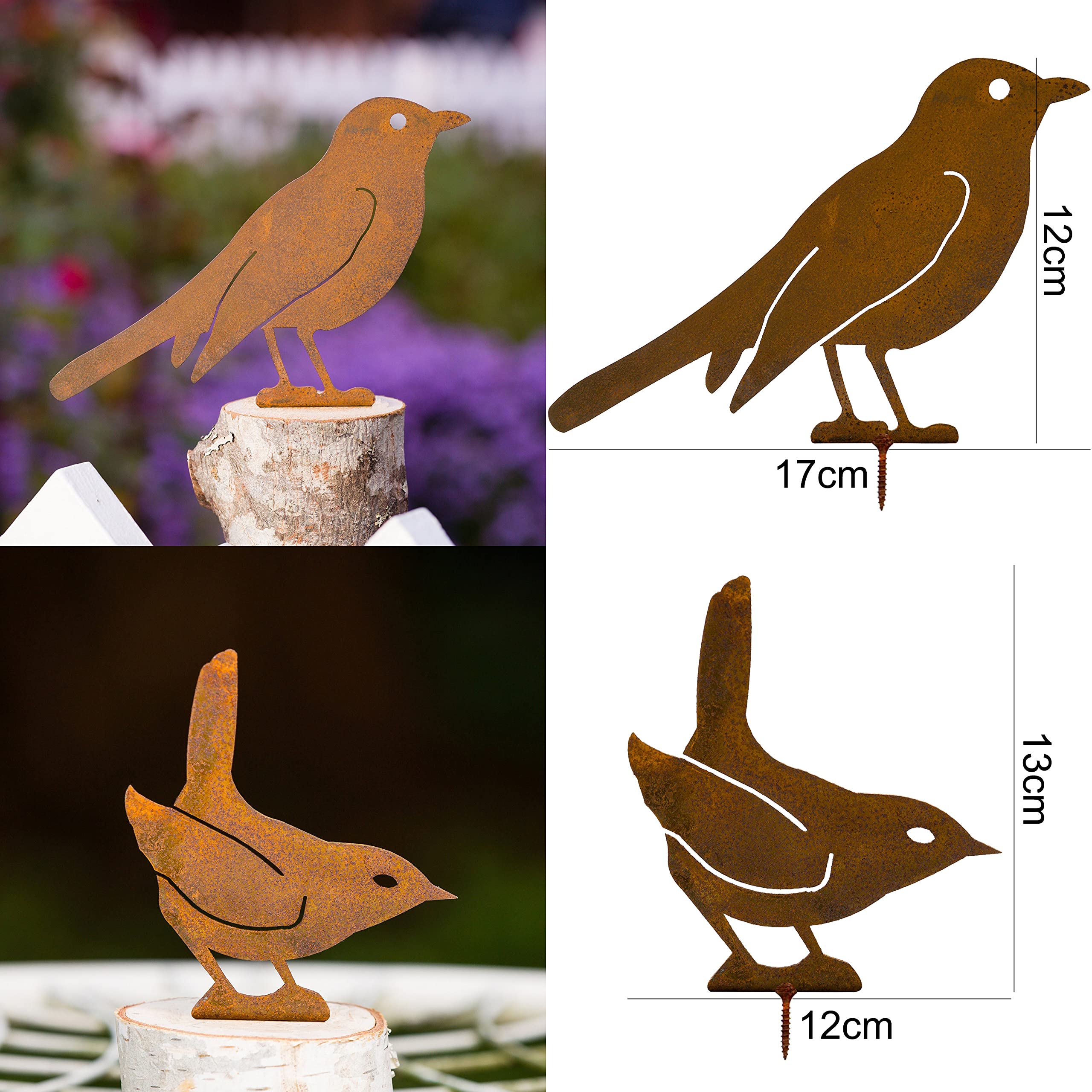 Pourquoi nos oiseaux sont indispensables : 🌿 Jardin vivant – aucun coin ennuyeux Les quatre oiseaux se perchent, se tiennent debout ou s'inclinent dans différentes poses – créant un jardin dynamique qui surprend à chaque regard. Détails pratiques : Chaque oiseau dispose d' une vis prémontée, permettant une installation facile sur quasiment toute surface (clôtures en bois, branches, pergolas, volets ou vieux troncs). Notre décoration de jardin en métal est facile à installer, car chaque pièce comprend une vis soudée d'avance. Détails techniques : Contenu : 4 × figurines oiseaux (formes & tailles variées) Matière : Acier recyclé (prétraité pour patine rouillée naturelle) Tailles : 17 × 11,7 cm / 13 × 12 cm / 13 × 10 cm / 10 × 14 cm 🐜 Repousse les insectes – protection naturelle Ces oiseaux rustiques agissent comme répulsif anti-insectes léger. Découvrez nos offres Objet décoratif en métal rouillé pour le jardin : large sélection de produits au meilleur prix | Livraison gratuite à partir de 10€* | Entreprise française | Paiement 4x possible 5PCS Oiseaux Rouillés avec Vis Oiseaux Jardin Silhouette Décoration Après un certain temps en extérieur, la couleur de la surface de l'oiseau évolue progressivement vers une patine rouillée, pour un design volontairement défraîchi chic. Parfait pour animer toute fenêtre, tout pot de fleurs, toute ligne de clôture ou tout étalage. Chaque oiseau adopte une attitude différente, pour que votre jardin paraisse vivant, exerce une action dissuasive sur les insectes et devient votre gardien de jardin. Aucun outil complexe requis, même pour les débutants. Ornements Rouillés Rétro CAINCAY Sculptures En Métal D'oiseaux Décoratifs De Jardin, Décoration Décoration Métal Rouillé Extérieur Solide et robuste : La décoration d'oiseau rouillé est en métal, solide et durable, difficile à déformer, la patine de rouille se développe avec le temps et attire le regard dans le jardin Vous alliez ainsi style et durabilité – un petit hommage à la nature. Qu'ils soient comme accents décoratifs sur la haie, sur le rebord de fenêtre ou sur un vieux tronc d'arbre : ces quatre oiseaux uniques transforment tout espace extérieur en lieu magique. 🔧 Installation facile – utilisation immédiate Chaque oiseau est livré avec une vis soudée. Lot de 4 piquets décoratifs oiseaux – Décoration extérieure rouillée pour jardin & balcon Donnez à votre jardin ou balcon une touche naturelle et rustique avec notre lot de 4 figurines d'oiseaux vivantes – des oiseaux en fer rouillé artisanaux, aussi beaux que fonctionnels et écologiques. Non de la déco statique, mais des œuvres d'art vivantes donnant à votre extérieur une personnalité. Le cadeau idéal pour l'anniversaire de vos proches.
