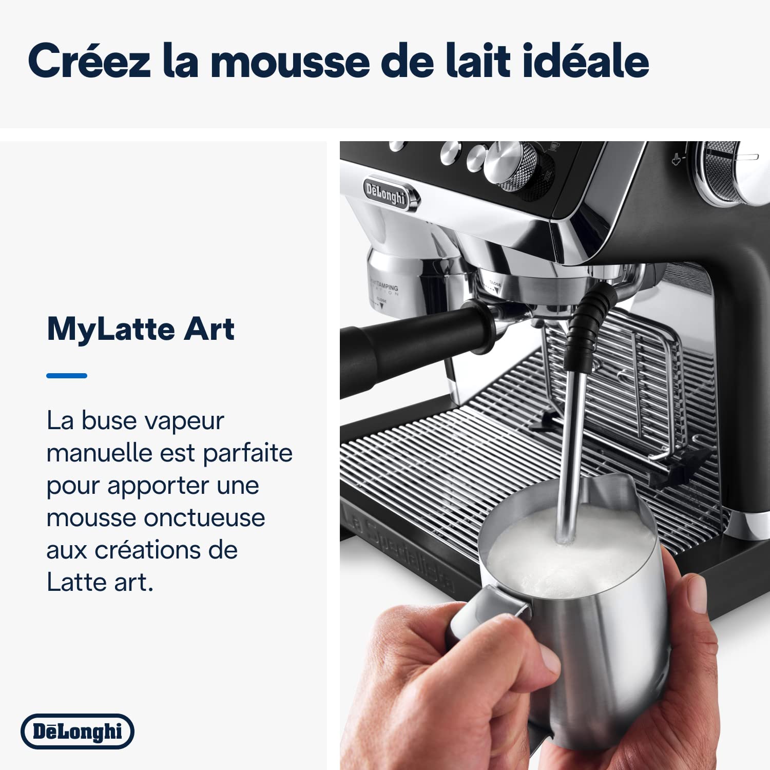 Dotée d'un design évoquant les machines à café professionnelles traditionnelles, La Specialista Prestigio éblouira en recréant l'expérience authentique du café à la maison et en s'imposant comme un élément incontournable de toute cuisine Système de compression intelligent : il suffit d'activer le levier pour exercer la pression adéquate, sans défauts ni taches. Préinfusion Dynamique Thermoblock De'Longhi Specialista Prestigio, Barista Pump Espresso Machine, Bean To Cappuccino Automatique Cafetera Espresso DELONGHI MODELO EC9355., M My LatteArt : le système de chauffe spécifique pour le lait garantit une grande performance de la vapeur. Vous pouvez texturer le lait manuellement en utilisant la tige à vapeur My LatteArt De'Longhi La Specialista Prestigio offers an indulgent and enjoyable coffee experience, providing consumers with consistent high-quality coffee. From Dynamic Pre-infusion Technology to 3 automatic one-touch drinks, each feature of La Specialista Prestigio has been meticulously designed to enhance coffee and milk preparation at home Máquina de Café Expresso DELOGHI La Specialista Prestigio EC9355.M Réglages de mouture pour différents types de grains de café Tout se passe à l'intérieur de la machine Technologie de broyage avec capteur : le moulin avancé est équipé de deux capteurs pour fournir la dose de café exacte.