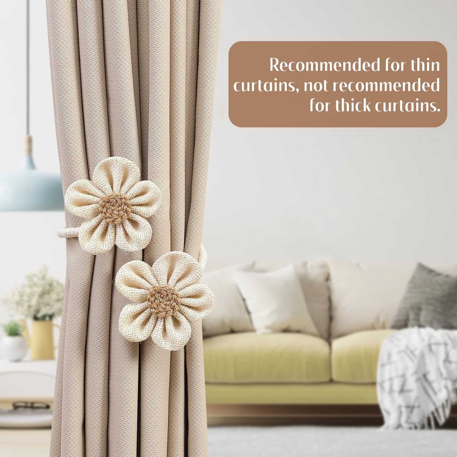 Améliorez votre décor sans effort avec ces accessoires polyvalents et élégants. Hshenjhu 2 Pièces Embrasses de Rideaux, Fleurs Embrasse, Fabriqués à la Main Attaches de Rideaux, Attaches Rideau Bohème, Curtain Holdbacks No Drill, pour Décoration de Maison Bureau, Beige Avec 3 fleurs, Attachez des embrasses de rideaux à fleurs à votre rideau de fenêtre pour compléter n'importe quel style de décoration et ajouter une touche élégante à votre maison Taille:environ 259mm de long, largeur de 146mm , épaisseur de 29mm, fleur:52x55mm . Avec 3 fleurs, Attachez des embrasses de rideaux à fleurs à votre rideau de fenêtre pour compléter n'importe quel style de décoration et ajouter une touche élégante à votre maison. GWAWG 2 Pièces Ebrasse à Rideau U Design Crochet Ebrasse Rideaux... Embrasses pour rideaux:Fabriquées en tissu de coton, nos embrasses de rideaux à fleurs offrent une durabilité. Retenues de rideaux CuFlower:vous recevrez 1 corde de retenue de rideaux en forme de café. Rideau Corde Vvikizy Embrasses De Rideaux Boho Embrasses De Rideaux Style Bohémien Accessoire Rideau Corde Et Fleurs