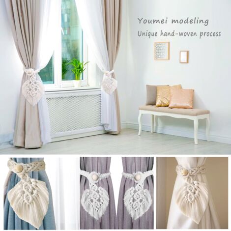 Matière : embrasse bohème en polyester et coton de qualité supérieure, tissées à la main, douces et confortables, pratiques et durables. Matière : embrasse bohème en polyester et coton de qualité supérieure, tissées à la main, douces et confortables, pratiques et durables. La corde de rideau bohème est unique, également comme belle décoration, donne à votre chambre une sensation chic, tendance et exquise Description : Les embrasses de rideaux sont conçues pour le style rétro américain, village et décontracté - Convient pour les rideaux et rideaux à fils fins et moyens, particulièrement adapté aux rideaux avec un design floral. La corde de rideau bohème est unique, également comme belle décoration, donne à votre chambre une sensation chic, tendance et exquise. Idée cadeau parfaite. Les embrasses de rideaux beiges s'adaptent à différents types de rideaux et rideaux d'épaisseur fine, moyenne ou plus épaisse, rideaux de fils, rideaux de gaze et tous les styles, particulièrement adaptées aux rideaux de style rustique, tendance et nordique. Rassemblez votre rideau et attachez la corde. SKLUM Lot de 2 Embrasses pour Rideaux en Macramé Katerina Beige Crème Assurez-vous que cela ne vous dérange pas 2., Les couleurs peuvent différer légèrement de celles de la photo. Les embrasses sont simples, longues cordes tressées à la main en coton avec pompons. Couleur : beige Contenu : 2 embrasses de rideau., Remarque : 1., Les mesures étant prises à la main, les tailles indiquées peuvent varier de 1 à 3 mm. Matériel : L'élégant lien pour rideau est fabriqué à partir de corde de coton beige, de fibre de jute naturelle et de bois. Facile à utiliser : pas besoin d'installer de matériel ou de percer des trous dans le mur, vous pouvez rapidement démonter et fixer les rideaux. Les embrasses de rideaux faites à la main donnent à vos rideaux un look unique, parfaites pour la décoration bohème... Rideau Corde EXQULEG Lot De 2 Embrasses De Rideaux Bohème En Corde De Coton - Tricotées à La Main Avec Pompon - Pour Décoration De La Maison (C Attaches Rideaux Bohème Caractéristiques du produit : Matière : coton.