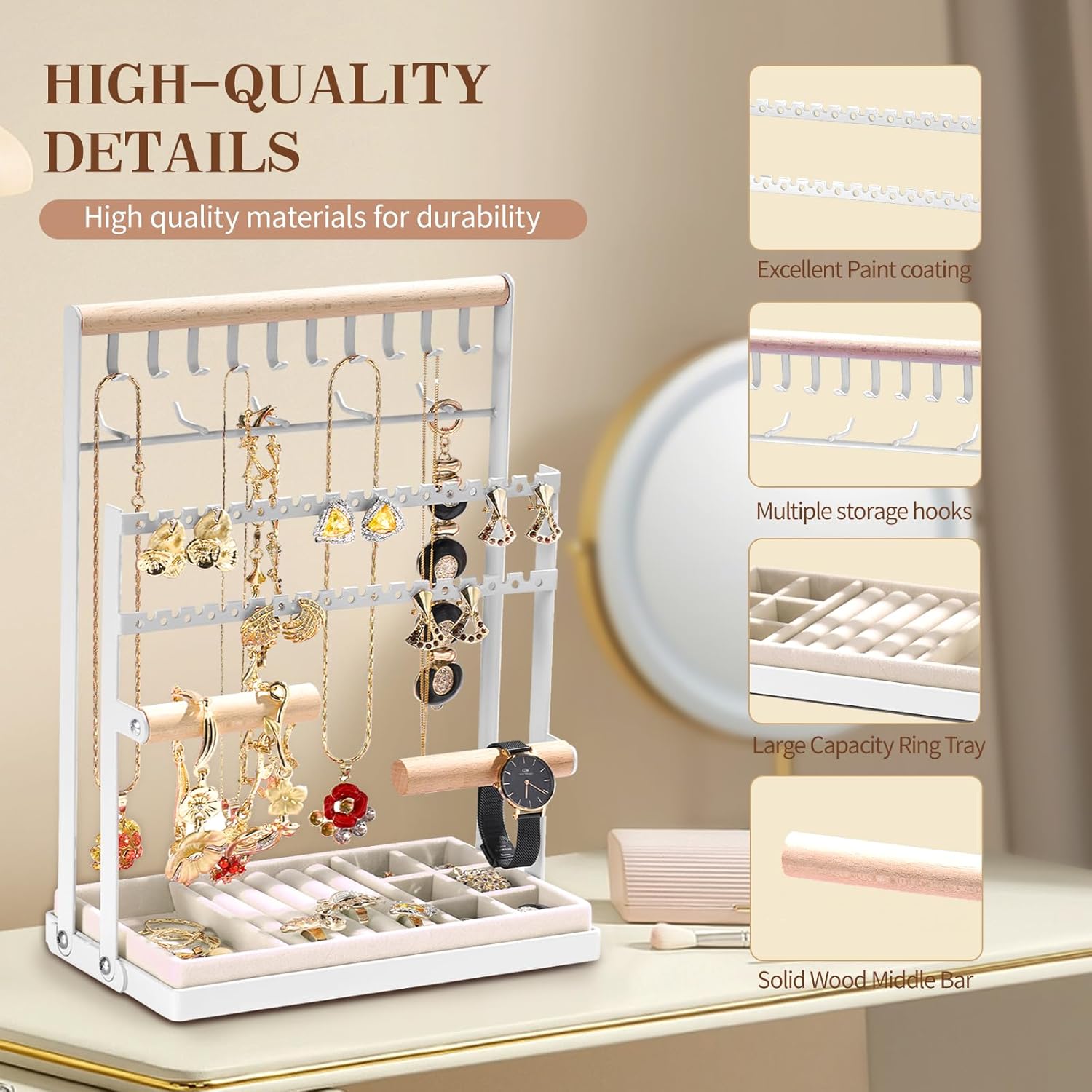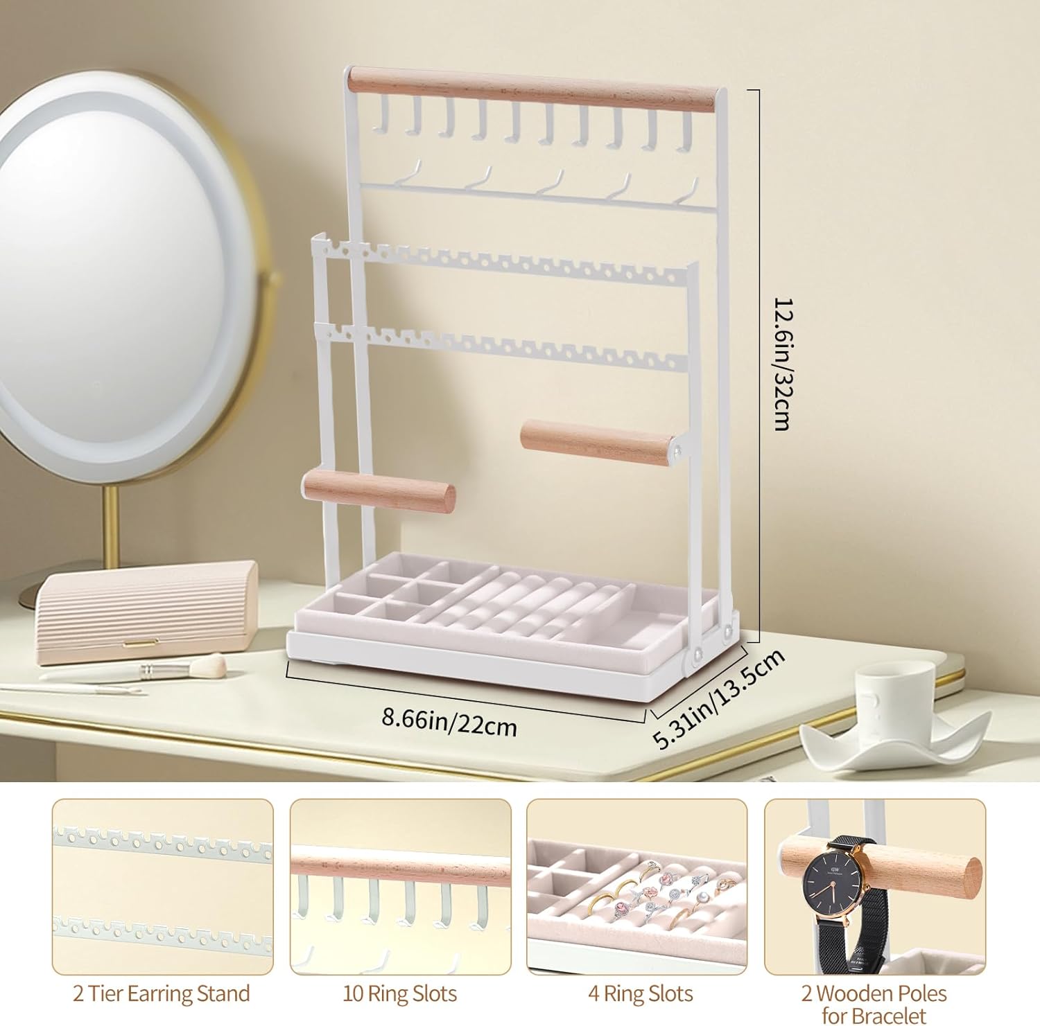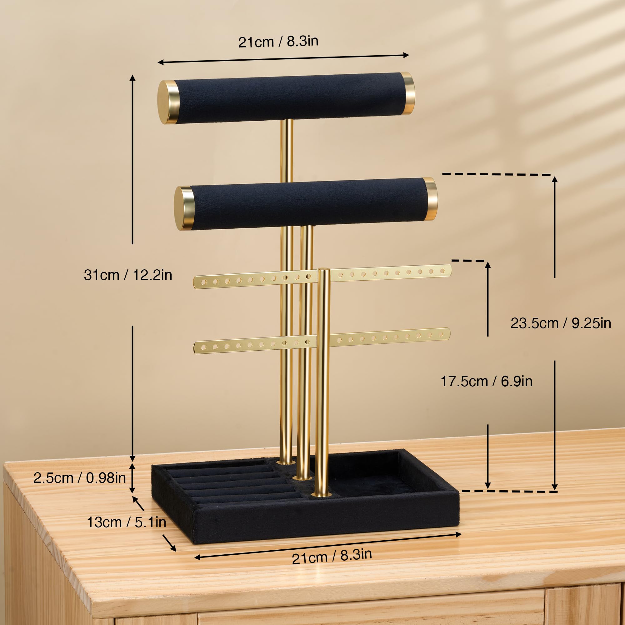 Insérez les tiges verticales dans les trous de la base avant de les fixer avec les vis. Grand espace d'affichage avec 5 sections : 3 tiges de bracelet, dont une haute tige spécialement conçue pour les longs colliers, plus un plateau spacieux et un support de bague pour garder vos différents bijoux soigneusement affichés Vous pouvez positionner le porte-bagues sur le côté gauche ou droit du plateau inférieur selon vos préférences. Idéal pour la maison ou en boutique : De l’organisation de votre coiffeuse personnelle à la présentation en boutique, ce support à bracelets polyvalent met en valeur les accessoires avec élégance Style unique allié à un savoir-faire raffiné : Le mélange de couleurs, associé à la base marron flottante et aux embouts des tiges, apporte une touche luxueuse qui met en valeur la beauté de vos bijoux Ajustez-les s’ils sont inclinés. Veuillez essuyer doucement la surface avec un chiffon sec en cas d’accumulation de poussière. Mettez en valeur et protégez plus facilement vos bracelets, colliers, boucles d'oreilles et bagues avec nos présentoirs à bijoux Un support à bracelet au look affirmé : Que ce soit pour embellir votre coiffeuse ou rehausser le charme d’une boutique, ce support à bracelets est plus qu’un simple présentoir, c’est une déclaration de style. Josmimic Organisateur de Bijoux à 2 Niveaux - Noir Support de Rangement Boucle D'oreille Songmics Présentoir À Bijoux Porte-Colliers | Nan Dh | Prix Au Maroc Support Bijoux Velours 3 Niveaux Ne pas inverser cette séquence. Doublure en velours pour une protection ultime : La doublure en velours douce qui recouvre les tiges à bracelets, le plateau et le porte-bagues protège vos bijoux des rayures. Organisation et présentation facilitées : Ce support à bijoux soigneusement conçu comprend 5 sections pour un accès facile et une présentation élégante : 3 tiges espacées pour éviter l’emmêlement des colliers et des bracelets, un plateau spacieux pour les boucles d’oreilles, des épingles, un porte-bagues dédié et plus encore. Matériaux : Panneaux MDF, acier, velours Précautions de SONGMICS : Guide d’assemblage important