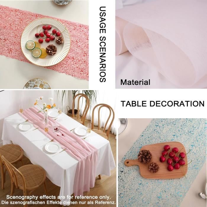 Il est idéal comme décoration de table, pour les loisirs créatifs ou pour ajouter une touche personnelle à toutes les occasions Chemin de table moderne - Décoration de table moderne : les nappes blanches lors de la fête de mariage, le chemin de table vert eucalyptus ajoute une touche de couleur joyeuse, la décoration parfaite pour toutes les ocns, que ce soit à l'intérieur ou dans le jardin Que ce soit pour une décoration de table réussie avec vos proches ou pour une fête festive, nos chemins de table en tissu non tissé sont parfaits pour décorer et mettre en valeur votre pièce avec style. ce chemin de table délicat convient non seulement comme décoration de table, mais aussi comme décoration pour buffets et étagères, pour bricoler des fleurs décoratives ou comme emballage créatif de cadeaux Pour toutes les occasions : que ce soit pour un anniversaire, un baptême, une fête prénatale, une rentrée des classes, une garden-party en été, Noël, Pâques ou un bal de fin d'année, le chemin de table vert eucalyptus de 30 cm de large embellit chaque table comme décoration de fête. Utilisez également le ruban non tissé pour des idées de décoration créatives, par exemple pour l'art floral, l'emballage cadeau ou la décoration individuelle de la pièce lors d'occasions festives En outre, la nappe peut être facilement rangée à plat et infroissable après la fête pour la prochaine utilisation Que ce soit pour une décoration de table réussie avec vos proches ou pour une fête festive, nos chemins de table en tissu non tissé sont parfaits pour décorer et mettre en valeur votre pièce avec style Avec nos chemins de table vert sauge, vous pouvez donner à votre fête une certaine touche ! Chemin de table eucalyptus vert - France Chemin De Table Vert Chemin De Table Mariage Intisse Vert Sapin, Decoration Mariage Cheminee De Table Décoration DIY : coupez facilement le chemin de table de 25 m à la longueur souhaitée avec des ciseaux et créez de grandes tables de fête, des tables de tente à bière, des petites tables d'appoint ou la décoration de la pièce selon vos souhaits. 30 cm - Longueur : environ 25 m. Couleurs : vert eucalyptus / rose clair / bleu ciel Contenu de la livraison : 1 rouleau de chemin de table en non-tissé (30 cm x 25 m) Remarques : 1., En raison des différents écrans et effets de lumière, la couleur réelle de l'article peut être légèrement différente de la couleur montrée sur les images., 2., Les mesures étant prises à la main, les tailles indiquées peuvent varier légèrement. Nous attachons une grande importance à vos commentaires et à votre satisfaction. Les chemins de table en non-tissé peuvent être combinés avec différents supports, arrangements floraux et décorations à disperser pour des décorations créatives et personnalisées