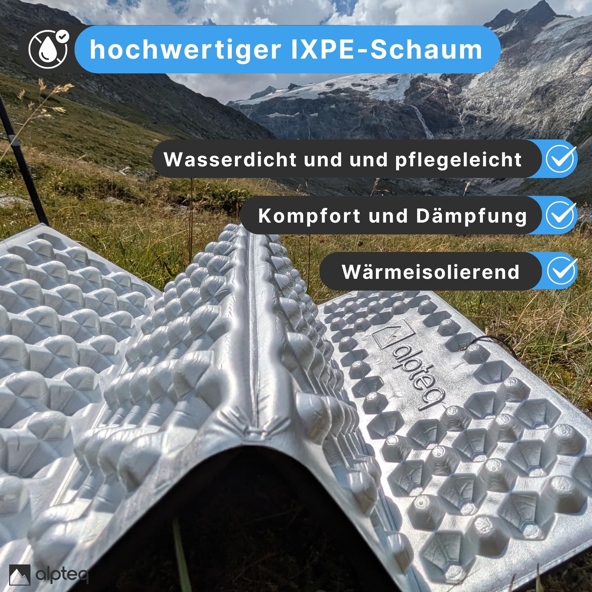 Notre coussin d'extérieur combine un design moderne, une matière imperméable et une excellente isolation thermique, idéal pour les enfants et les adultes Fabriqué en mousse IXPE à cellules fermées de qualité supérieure avec surface revêtue d'aluminium, le matelas convainc par son isolation thermique, sa résistance à l'eau et sa grande résistance. Il réduit la pression dans la zone d'assise sensible et assure sensiblement plus de confort au quotidien – à la maison, au bureau ou en voyage. Polyvalent et robuste : que ce soit comme matelas isolant pliable, coussin d'assise pour les festivals, accessoires de randonnée ou gadget dans le jardin, le lit de repos est votre compagnon fiable dans toutes les situations. Polyvalent, résistant aux intempéries, isolant, votre fidèle compagnon pour toutes les aventures en plein air. Chariot pliable pour jardin et plage capacité 100 kg Rustico - Gamm vert Structure innovante en nid d'abeille : la surface hexagonale avec chambres à air offre un confort supplémentaire sur toutes les surfaces : que ce soit sur le sol, au stade ou en déplacement en aventure en plein air. Dimensions : 40 x 30 x 2 cm (plié : 30 x 10 x 4,5 cm) | Matériau : mousse IXPE + aluminium | Poids : 52 g | Valeur R : 2,2 Matelas de camping Facila Comfort AX Mousse thermique pliable 560g... Coussin Pliable Alpteq® RastPlatz Coussin D'assise Pliable, Matelas Thermique D'extérieur, Pour Jardin, Camping Et Loisirs, Imperméable, Isolant Et Ultra Léger, Idéal Pour Sac à Dos Et Chaise, Noir Sac à Dos Pliable Profitez d'un confort ultra léger avec le siège de repos – votre coussin d'assise pliable pour toutes les occasions : randonnée, camping, stade, jardin ou festival. Grâce à sa construction pliable, le coussin d'assise est prêt à l'emploi en un clin d'œil, que ce soit comme coussin d'assise lors de la randonnée, coussin de siège au stade, support isolant pour le camping ou comme coussin de genou pour le jardinage. Isolation thermique et imperméable : le coussin d'assise protège efficacement vos fesses du froid et de l'humidité – Idéal pour les randonnées d'hiver, les nuits de camping ou les chaises de jardin humides Les enfants aiment également utiliser le matelas sur les aires de jeux, dans le jardin ou en voyage. Ultra léger et compact : pèse seulement 52 g, le coussin d'assise se replie à 30 x 10 x 4,5 cm pour économiser de l'espace. Le matelas Alpteq RastPlatz est votre compagnon idéal pour la randonnée, le camping, les festivals, le jardin ou les visites au stade. Convient également pour les hémorroïdes : la forme spéciale soulage la pression dans la région anale et assure une assise confortable, même en cas d'inconfort.