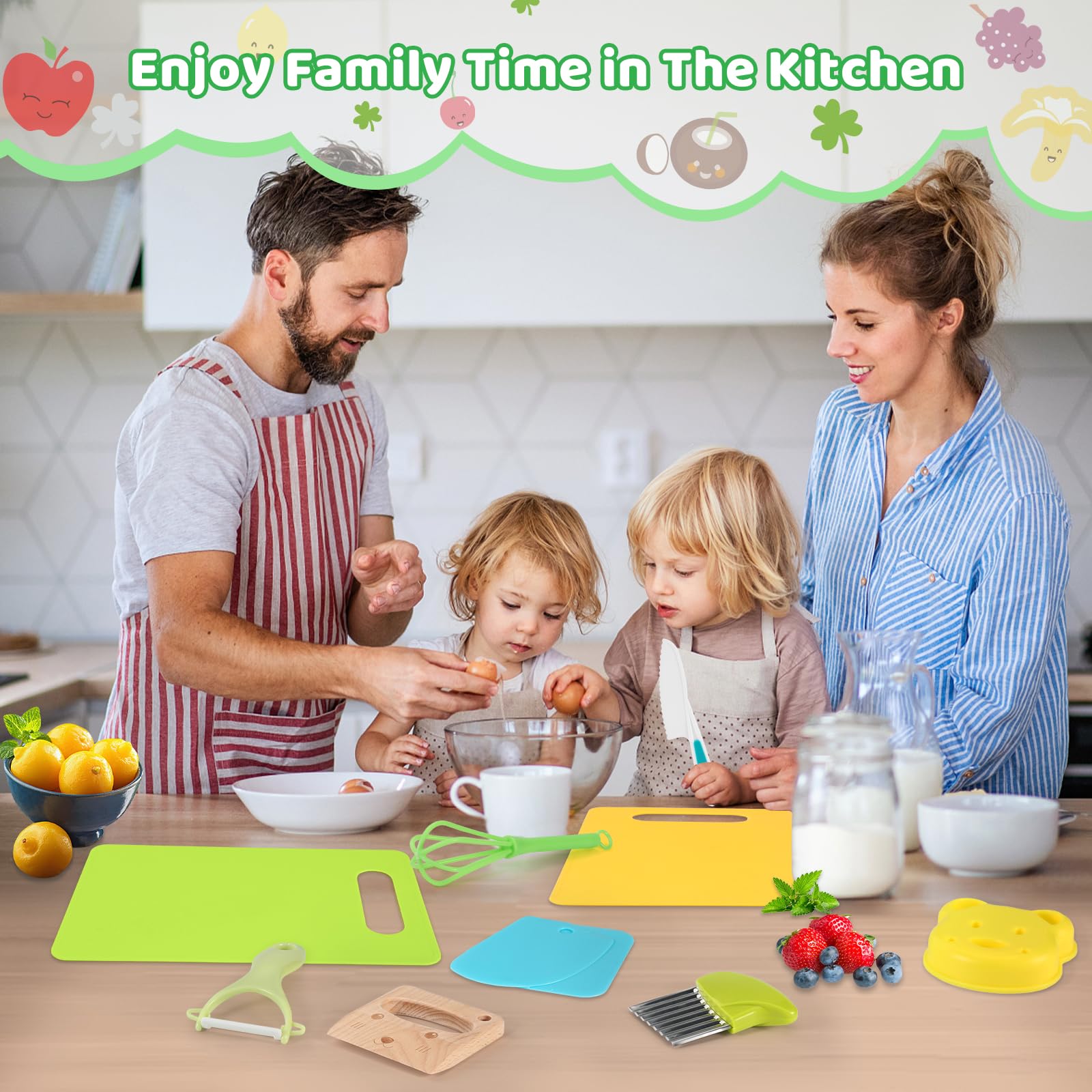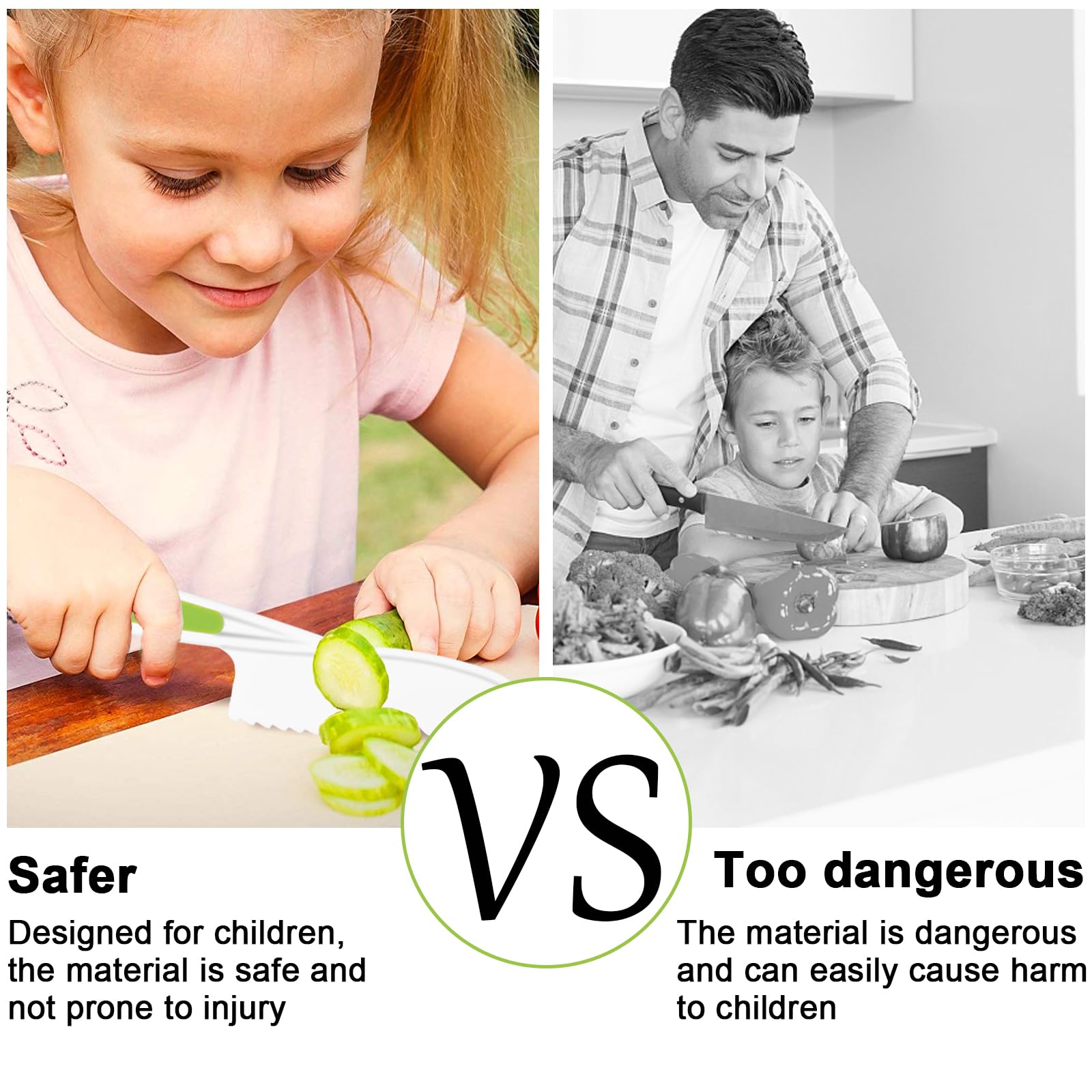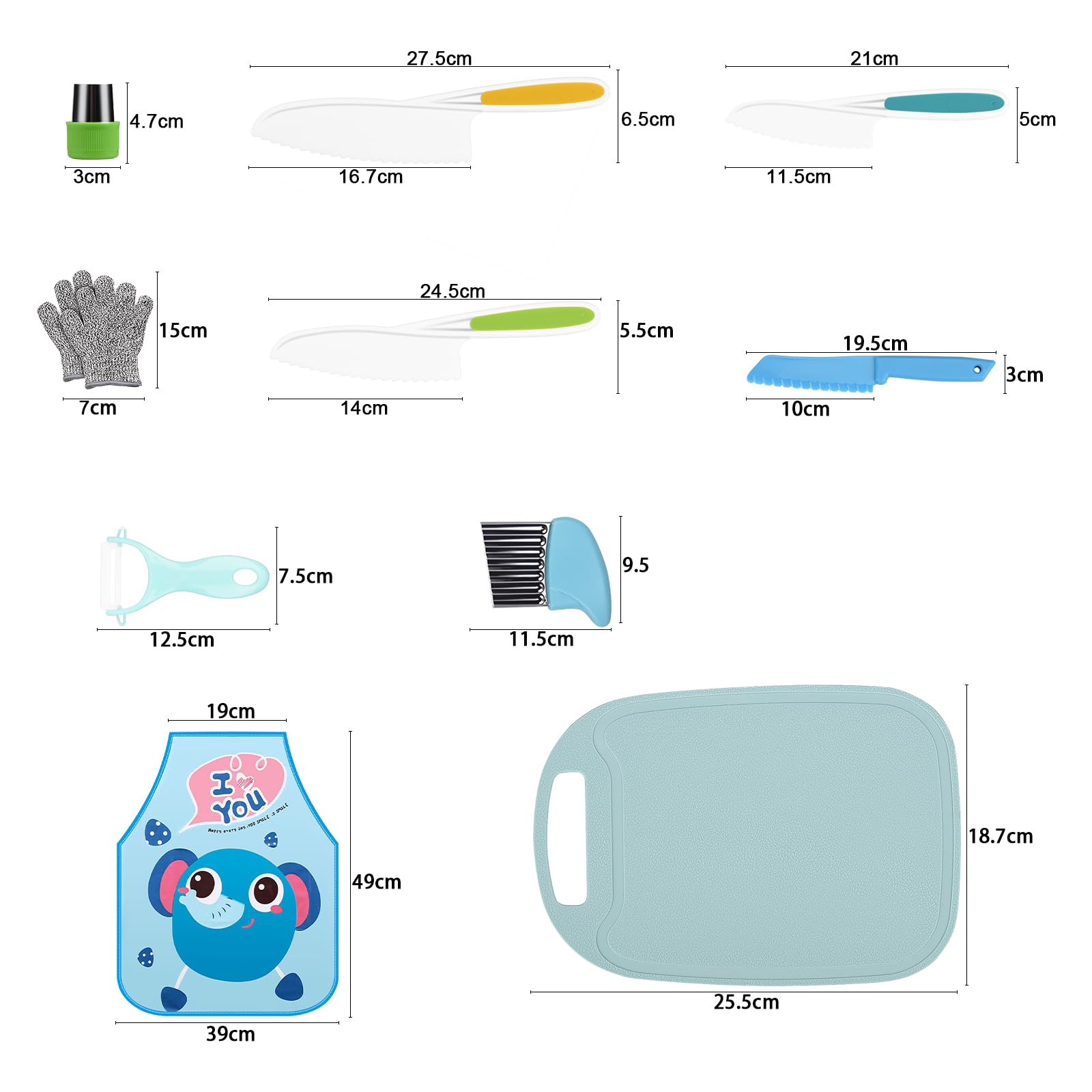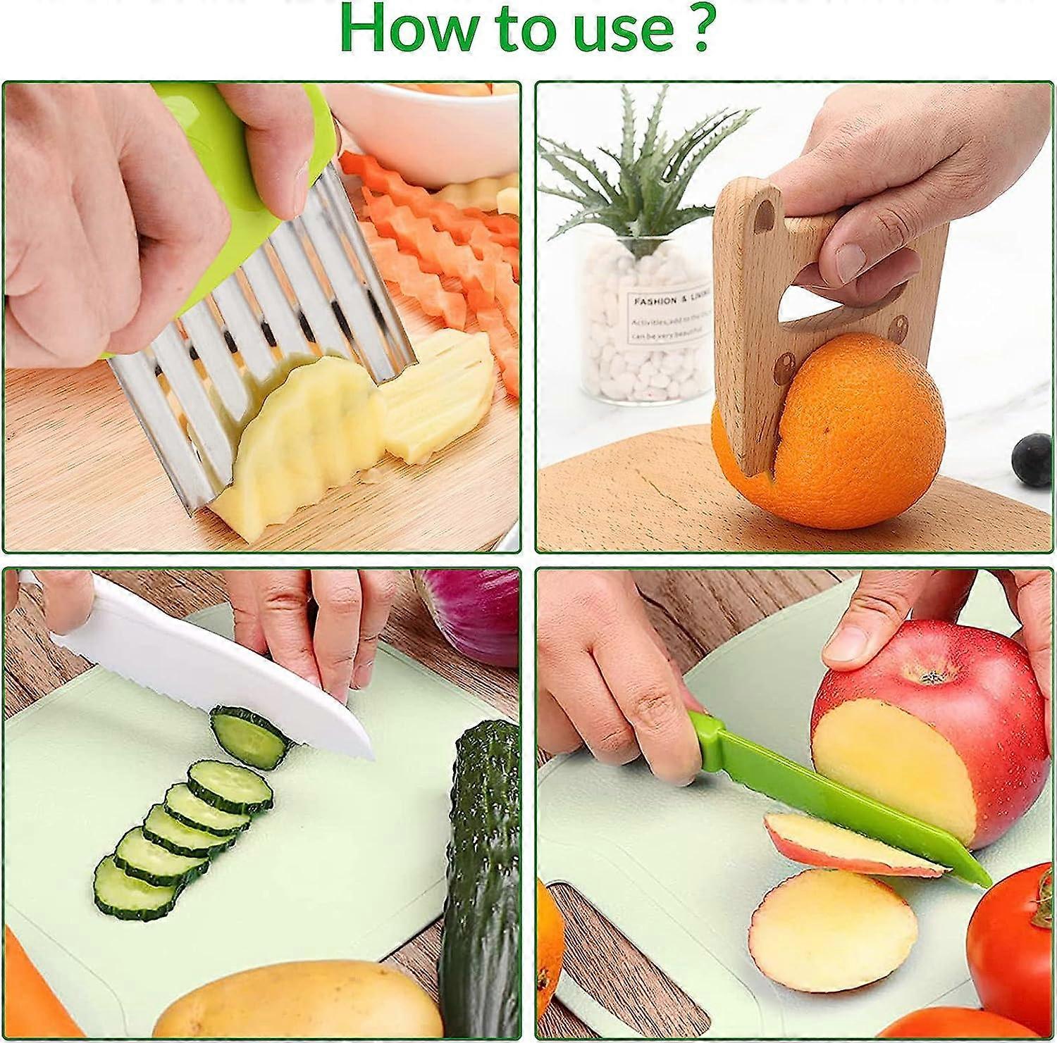 L'ensemble de couteaux de cuisine pour enfants est parfait comme cadeau d'anniversaire, cadeau de Noël ou cadeau de fête. Matériau sûr : les couteaux sont fabriqués en plastique PP de haute qualité, sûr et respectueux de l'environnement, robuste et durable, pas facile à casser, surface lisse, réutilisable, équipé d'un tablier anti-saleté pour protéger les enfants de la pollution des vêtements pendant l'apprentissage et le jeu. Très polyvalent : ces couteaux de cuisine pour enfants peuvent être utilisés dans de nombreuses occasions, telles que les réunions de famille, les fêtes d'anniversaire, les dîners, les événements parents-enfants et bien plus encore. Set de 10 couteaux de cuisine pour enfants pour couper les légumes et les fruits, convient aux Ajoutez du charme à ces occasions. Notre couteau sécuritaire en bois peut couper une carotte crue, mais ne peut pas couper les petits doigts. Combiné à notre planche à découper en bois, il est parfait pour initier les petits chefs aux rudiments de la cuisine Tablier Planche Couteaux Enfant TDDL Lot De 14 Couteaux De Cuisine Pour Enfants Couteaux D Jouet éducatif Cuisine En matériaux sans BPA (bois, polypropylène, inox), ils sont sans danger pour couper fruits, légumes, fromage... Idéal pour initier les kids à la cuisine...