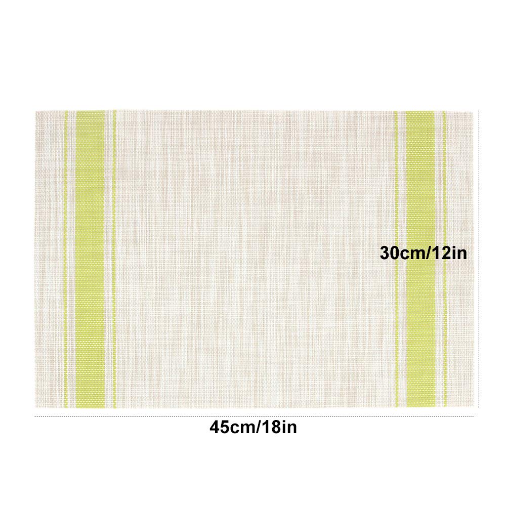 Remarques: Ne pas laver au lavoir?g machine, nettoyez directement avec une brosse et de l'eau. Sets de table tissés avec des matériaux PVC écologiques de haute qualité, résistance à la chaleur efficace d'environ 185 ° F (85 ℃), protégez votre table des rayures et des taches, le liquide peut passer à travers les sets de table, nettoyez-le une fois terminé Dimensions: 30 x 45 cm / 12 x 18 pouces. Tous les sets de table sont coupés à la main, peut-être environ 0,4 pouces d'erreur. Les sets de table dans un design élégant et de grande qualité font une bonne décoration pour votre maison, salle à manger, cuisine, h?tel et bureau. Ce tapis de table peut également servir de décor de table à manger intérieure ou extérieure, et des sets de table d'h?tel, des dessous de verre, des sets de table, des fourchettes et des cuillères, créant un atmosphère élégante à manger. Les sets de table de qualité supérieure avec un design exquis font la meilleure décoration de table et protègent vos tables si vous avez de jeunes enfants. Ce tapis de table peut également être utilisé comme intérieur ou décor de table à manger en plein air et napperons d'h?tel, table de sous-verres, sets de table, repose-cuillère à fourchette, créant une atmosphère de salle à manger élégante et propre Style: Veuillez vérifier la photo Sécurité: produits fabriqués avec un matériau PVC non toxique et respectueux de l'environnement Applications: magasin occidental, steak shop, maison, salle à manger, cuisine, h?tel et bureau. Ensemble de 6 sets de table tressés - Outspot Protection Table Cuisine Salle à Manger Shiwaki Ensemble De 6 Sets De Table 18 X 12 Pouces, Antidérapants, Lavables, Tapis De Table En PVC, Anti-déchirures, Résistants à La Chaleur, Anti- Salissures Et Lavables Pour La Cuisine - Vert Lot 6 Napperons Vert ??Complément parfait à votre table à manger, napperons de bonne qualité avec un design exquis et un aspect très élégant. Avantages: respectueux de l'environnement, non toxique et facile à nettoyer. Caractéristiques: Complément parfait à votre table à manger, sets de table de bonne qualité avec un design exquis et très élégant. Ce tapis de table peut également être utilisé comme intérieur ou décor de table à manger en plein air et napperons d'h?tel, table de sous-verres, sets de table, repose-cuillère à fourchette, créant une atmosphère de salle à manger élégante et propre. Emballage inclus: 6 x sets de table (lot de 6).