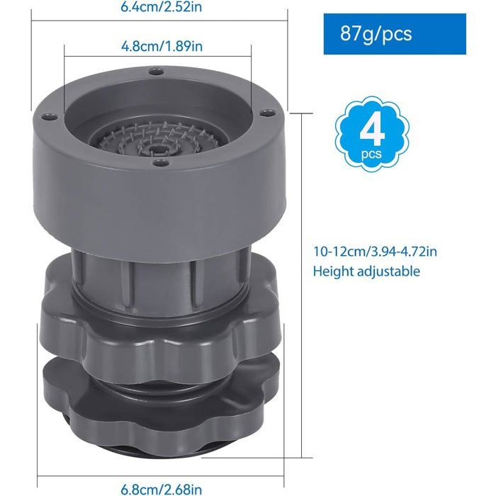 Support Anti Vibration Machine a Laver ajustable Tapis Anti Vibration Machine A Laver 4 Pièces Anti Vibration Machine A Laver 4 Pieces Anti Vibration Machine A Laver Empecher Le Lave Linge De Bouger Patin Anti Vibration Lave Linge Pour Machines A Laver Et Seche Linge 92348004 Facile à Installer : Ce tapis anti vibration machine a laver est facile à utiliser, Il suffit de soulever chaque pièce de la machine et de pousser le coussinet insonorisant en position pour terminer l'installation. Description du produit: - Tapis de machine à laver de haute qualité, résistant à l'humidité, antidérapant et absorbant les chocs. Spécification: Type : anti vibration machine a laver Matière : plastique Farbe: Gris Hauteur : 7-10 cm (réglable) Diamètre extérieur : environ. Tapis Anti Vibration Machine a Laver, 4 Pièces Universel Patin Machine à Laver, Ajustable Anti Vibration Anti Bruit Support Machine a Laver Seche Déposer un avis Poser la 1ère question - 22.74 6,4 cm Diamètre intérieur : 4,8 cm Le forfait comprend : 4 pcs Tapis de machine à laver Matériaux de Qualité Supérieure : Fabriqué en silicone de haute qualité, notre tapis est doux, élastique et durable. Il offre une excellente résistance à l'humidité et à l'eau, garantissant que votre machine reste bien ventilée et protégée contre les dommagesExcellente Adhérence : Équipé de 19 ventouses, notre patin anti-vibration assure une adhérence exceptionnelle sur les... Support Anti Vibration Machine a Laver: Ce patin anti vibration lave linge a des ventouses en caoutchouc pour réduire le bruit dans une large mesure et peut absorber fermement le sol. -Facile à installer, il suffit de placer 4 stabilisateurs de machine à laver sur le fond de la machine à laver ou du meuble.