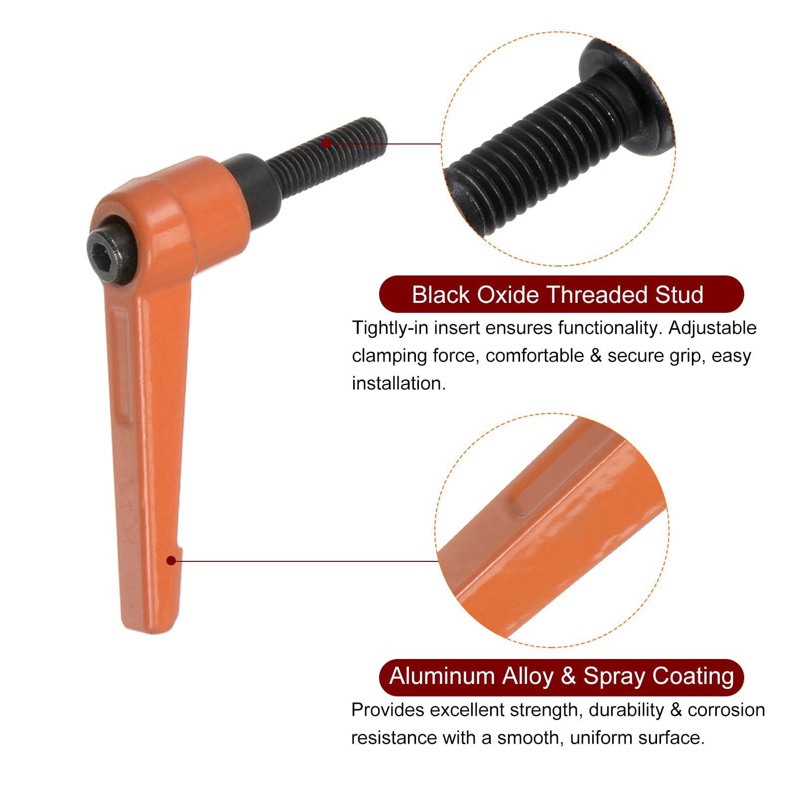 ★ Large gamme d'applications --- Les poignées réglables offrent une prise sûre et des ajustements rapides pour les applications nécessitant des ajustements fréquents et rapides ou travaillant dans des espaces restreints, tels que les tours, les presses à creuser, les machines à scier, les dispositifs de fraisage de machines, les machines et équipements. Lot de 2 poignées de levier de serrage, filetage mâle M10 x 50 mm, boutons de boulon rotatifs réglables à dégagement rapide Noir (Applications Attributs :* Taille du filetage mâle : M10 (pas de 1,5 mm)* Longueur du filetage mâle : 60 mm (2,63)* Longueur du levier : 75 mm (2,95) * Taille de la douille hexagonale : 5 mm (0,2)* Matériau : alliage de zinc, acier au carbone* Finition : revêtement par pulvérisation, oxyde noir* Couleur : noirQu'est-ce que Inclus :* 2pcs x poignées à levier de serrageApplications & Caractéristiques :--- Les poignées à levier de serrage réglables offrent une prise sûre et des réglages rapides pour les applications nécessitant des ajustements fréquents et rapides ou travaillant dans des espaces restreints. Serrez toujours fermement la poignée de serrage pour éviter tout mouvement. La tige filetée est noircie pour éviter la rouille. Peut être tourné librement à 360 degrés. La surface du levier est pulvérisée, lisse et plate pour éviter la rouille et la corrosion. Taille du levier de serrage de la manivelle rotative --- Taille du filetage : M10 (pas de 1,5 mm) ; Longueur du filetage : 12 mm ; Longueur totale : 125 mm ; Diamètre de la tige : 12 mm ; Design : avec rainures ★ Applications polyvalentes --- La longue poignée de bras est conçue pour être facilement montée sur un arbre ou une broche et offre une prise en main sûre et un réglage... Largement utilisé dans les tours, perceuses à colonne, machines à scier, fraiseuses, machines d'emballage, équipements d'impression, machines à bois, équipements mécaniques, instruments et équipements industriels. CoCud Lot de 2 leviers de serrage à manivelle - Filetage M10 - Longueur Poignée Tour Perceuse CoCud Lot De 2 Poignées à Levier De Serrage, Filetage Mâle M10 X 25 Mm, Boutons Rotatifs Réglables à Dégagement Rapide Argenté (Applications : Pour Machines De Tour), 2 Pièces Poignée à Levier ★Facilité d'utilisation --- Poignée de verrouillage de boulon avec levier de libération rapide, force de serrage réglable, prise ferme, difficile à glisser. --- Prise ferme, force de serrage réglable, levier de verrouillage et de dégagement rapide, pas facile à glisser, la poignée à boulon. Conseils utiles :--- Assurez-vous d'utiliser la poignée de taille correcte pour votre application. Pour empêcher tout mouvement du composant à sécuriser, serrez toujours fermement la poignée de serrage. Ne serrez pas trop la poignée car cela pourrait endommager ou dénuder les filetages du composant d'accouplement.