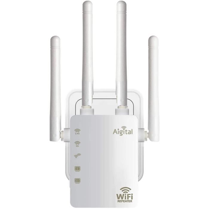 EN STOCK : Rpteur WiFi Puissant 1200Mbps Amplificateur WiFi sans Fil WiFi Range Extender Double Bande 5 GHz & 2,4 GHz, Compatible AP/Routeur/Pont, Port Ethernet, Compatible Tous Les Routeurs,, M5-260108-040 pas cher. Livraison rapide partout en France Que vous utilisiez une tablette, un haut-parleur intelligent, une caméra de sécurité ou un appareil Alexa, notre répéteur peut fournir une connectivité sans interférence dans votre maison Repeteur Wifi 7 Repeteur WiFi Puissant 1200Mbps - Amplificateur WiFi Double Repeteur Wifi 5ghz