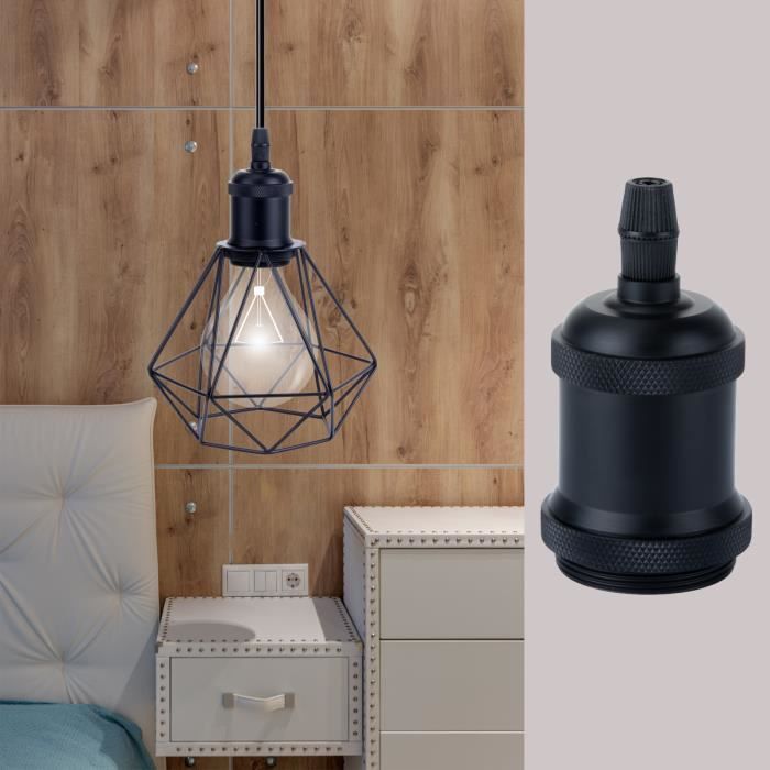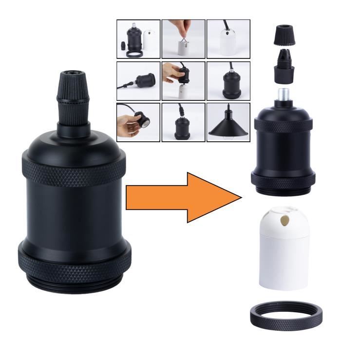 Vous pouvez créer votre propre luminaire selon vos besoins. Elle est compatible avec toutes les ampoules à culot Edison standard E27 de 110-240 V et de 60 W maximum. Il suffit de connecter correctement les fils aux fils neutre et sous tension, puis d'assembler toutes les pièces pour terminer l'installation. Usage intérieur uniquement. Alimentation : Câblée Douille de lumière E26 E27 Vintage - GOTOTOP - Blanc - ABS - Ignifuge... Douille d'ampoule : tuto pour savoir comment la brancher - Bricolage Facile Installation 2 en 1 : La douille E27 est livrée avec un anneau d'abat-jour vissable, avec ou sans abat-jour. Une douille vintage E27 et des ampoules Edison s'accordent parfaitement pour apporter instantanément un charme vintage et une élégance à votre intérieur. Elle convient parfaitement aux suspensions et aux plafonniers suspendus, apportant une touche rétro et élégante à votre pièce. Matériau : Douille E27 en métal noir brillant galvanisé, aspect antique. Douille Industrielle Vintage Douille LEDSONE E27, Douille D'ampoule E27, Douille Vintage Douille Pour Lampe Suspendue Une douille vintage E27 et des ampoules Edison s'accordent parfaitement pour apporter instantanément un charme vintage et une élégance à votre intérieur Ampoule requise : Nécessite une ampoule E27 Cette douille en métal E27 présente une texture douce qui ne se décolore pas facilement et est de qualité supérieure pour une longue durée de vie. Consommation énergétique : A+ Caractéristiques : La douille à vis Edison E27 est dotée d'un filetage interne en céramique, garantissant une excellente isolation et une sécurité optimale. Spécifications : Matériau : Métal, Tension : 110-250 V, Puissance : Max., 60 W (Remarque : ampoules non incluses)