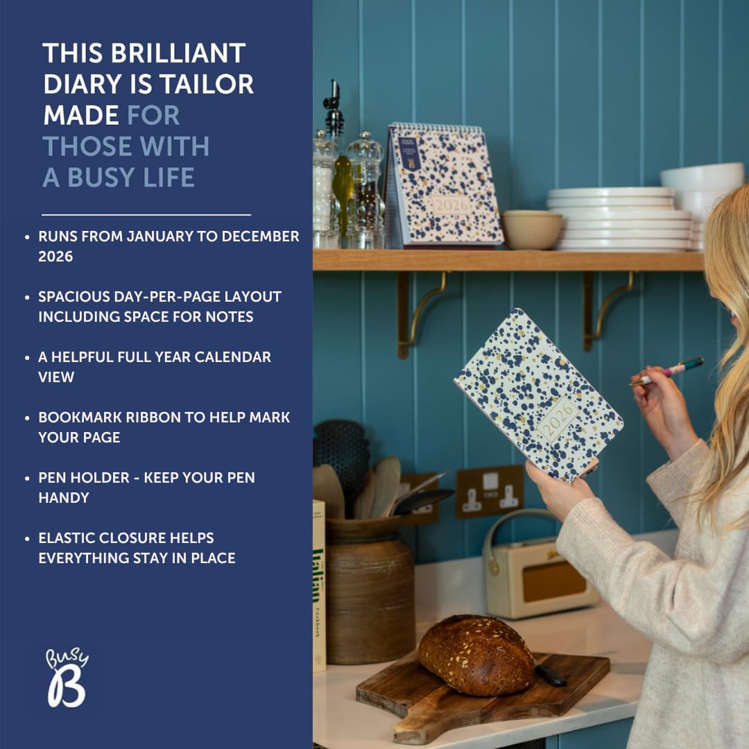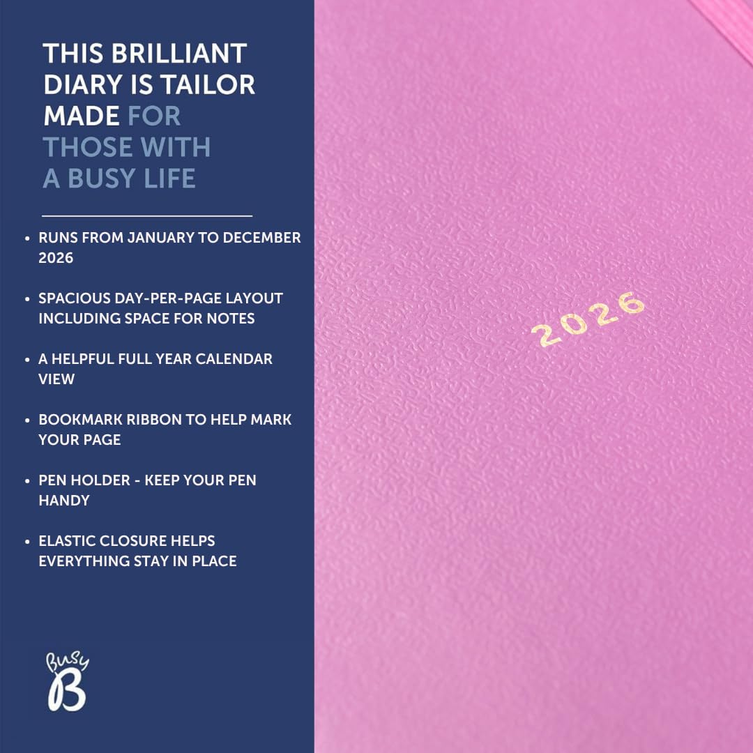 Cet agenda allie harmonieusement fonctionnalité et style, ce qui en fait un outil agréable à utiliser tout au long de l'année. Ce planificateur au format A5, orné d'élégants détails dorés, offre suffisamment d'espace pour écrire pour chaque jour, y compris les week-ends. Ce planificateur est certifié FSC, ce qui témoigne d'un engagement en faveur d'une gestion responsable des forêts. ORGANISEZ-VOUS - Un indispensable du bureau qui s'étend de janvier à décembre 2026., Comprend un planificateur annuel, des calendriers et une vue d'ensemble de 2027 pour vous aider à planifier et à rester organisé. L'agenda propose également un planificateur pour l'année 2027, ce qui vous permet de vous projeter dans l'avenir. Agenda Journalier 2024: Planificateur 1 Page par Jour avec Heure 366 Jours - Jan Chaque jour dispose d'une page entière avec un large espace d'écriture et un mini-calendrier avec les week-ends, idéal pour suivre les rendez-vous et les tâches. La couverture souple fuchsia réhaussée de détails dorés confère une touche d'élégance à votre planning quotidien. Les enseignants, les étudiants et les voyageurs peuvent compter sur son format adaptable pour rationaliser les tâches quotidiennes, les objectifs de remise en forme et la planification des voyages d'affaires de manière transparente Agenda Fuchsia Doré Busy B Busy B - Agenda 2026 - Planificateur Journalier A5 Pour Agenda élastique Marque-page La couverture marine dégage une élégance raffinée, tandis que la texture douce confère une touche de luxe à votre planning quotidien. Son format compact (15 x 21,5 cm) se glisse facilement dans un sac à main ou sur un bureau, ce qui en fait un compagnon idéal pour les professionnels et les étudiants très occupés. Busy B - Agenda 2026 - Planificateur journalier A5 pour étudiants, professionnels et enseignants ... Bande élastique et ruban marque-page - Fuchsia/Doré Il est doté d'une fermeture élastique pratique, d'une boucle pour stylo et d'un ruban marque-page pour faciliter la consultation. PLANIFICATION QUOTIDIENNE - Restez maître de votre emploi du temps grâce à cet agenda complet. La présentation d’un jour par page de cet agenda 2026 de Busy B vous permet de mieux vous organiser. ATOUTS FONCTIONNELS - Améliorez votre prise de notes grâce à des détails pratiques tels qu'un élastique de fermeture, une boucle pour stylo et un ruban marque-page.
