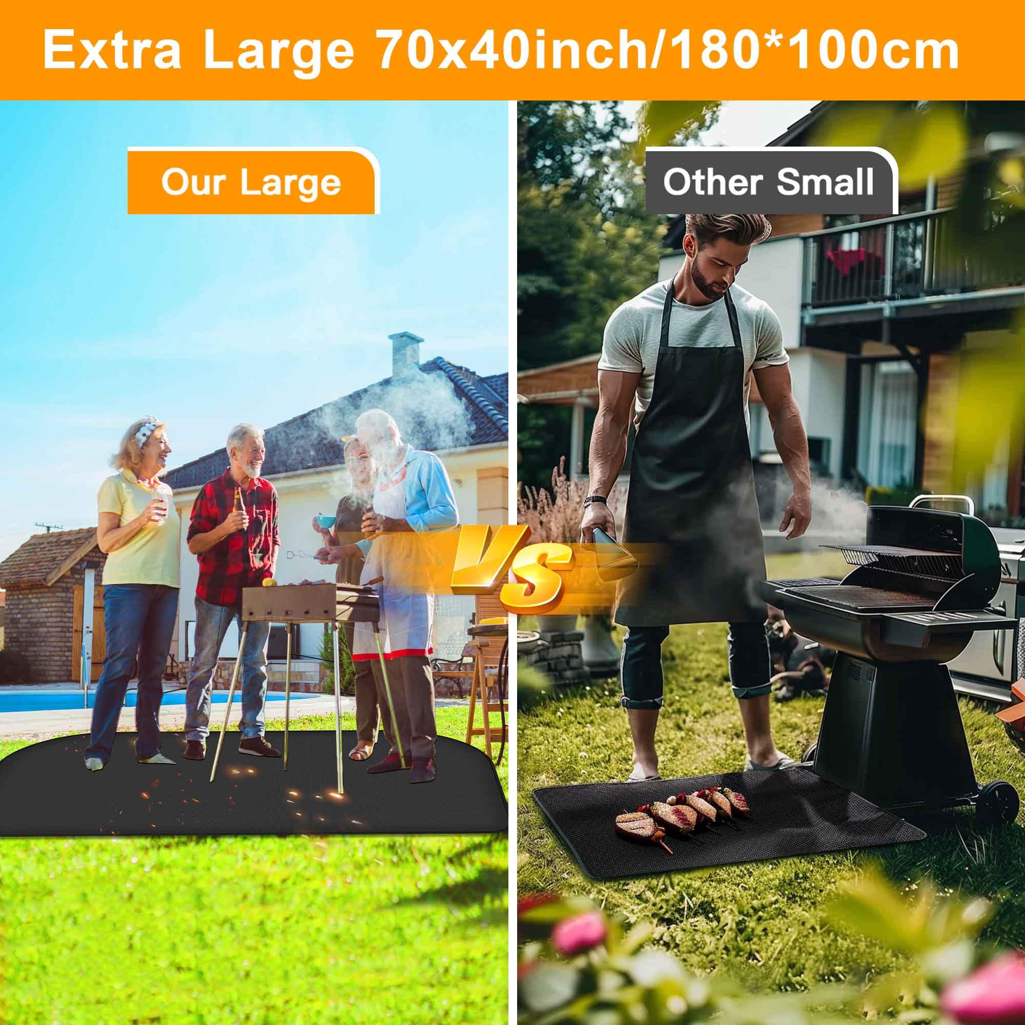 Il empêche les dommages causés par la chaleur et est idéal aussi bien pour l'intérieur que l'extérieur. Dimensions : le tapis de barbecue a un format extra large de 150 x 100 cm. En tant que support ignifuge, il protège la zone sous votre foyer ou votre cheminée en recueillant les liquides renversés, les éclaboussures et autres impuretés, et protège le sol, les braises vacillantes ou les étincelles Description du produit Résistant à la chaleur, à l'eau et à l'huile – un must have pour les barbecues en plein air. Il protège votre zone de barbecue, sert de bouclier thermique pour les cheminées et protège les pelouses ou les terrasses de la chaleur et des déversements. Il assure une cuisson sûre en empêchant le barbecue de glisser accidentellement. Que ce soit pour un barbecue dans le jardin ou pour le camping en plein air, il offre une flexibilité et une facilité d'utilisation ultimes. Sécurité antidérapante : la surface antidérapante maintient votre barbecue en place pendant l'utilisation. Tapis Barbecue,Feuille Barbecue Anti-adhésif Réutilisable et Résistant... Léger et pliable : Facile à ranger et à transporter, idéal pour l'extérieur. Tapis De Barbecue D'extérieur 100 X 100 Cm Ff291 Esschert Design à Prix Tapis Antidérapant Huile Eau KEENSO Tapis De Gril Tapis De Barbecue Rond à 2 Couches, Tissu En Fibre De Verre Enduit De Tapis Plancha Sol Exterieur Le nettoyage est facile avec seulement du savon et de l'eau, ce qui garantit un environnement de barbecue hygiénique et un entretien sans effort. Design antidérapant : Assure la stabilité du barbecue et empêche le glissement. Léger et pliable, il peut être utilisé n'importe où pour un barbecue encore plus pratique. Ce tapis de protection de sol a été spécialement conçu pour garder l'extérieur sûr et propre et est un accessoire indispensable pour tout amateur de barbecue et de cheminée. Résistant au feu et à la chaleur : fabriqué en fibre de verre de haute qualité avec revêtement en silicone, ce tapis de barbecue peut résister à des températures allant jusqu'à 2000 °F et offre une protection complète pour votre barbecue, cheminée et sol.