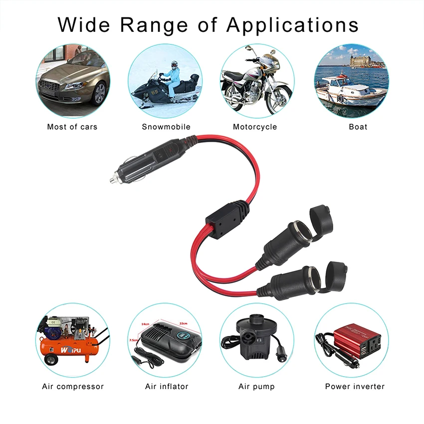 En cas de doute sur la procédure d'installation, consultez un professionnel qualifié. 2 Pcs Adaptateur Mâle Pour Allume-Cigare Avec Câble D'alimentation 16 AWG 12V/24V Universel, Pour Onduleur De Voiture, Pompe à Air, Tasse électrique NPTERBL I. 【Usage Polyvalent et Courant】Idéal pour alimenter en toute simplicité vos accessoires automobile basse et moyenne puissance comme les chargeurs USB, les lampes LED, les petits ventilateurs ou les appareils de navigation. Conçu pour une installation simple par sertissage ou soudure pour remplacer un câble défectueux. Très utile pour une utilisation de nuit. 【Connexion Simple et Sûre】Câble de remplacement à connexion facile, avec fil rouge pour le pôle positif (+) et fil noir pour le négatif (-). Accessoires automobiles universels standard, compatibles avec presque tous les modèles de prise allume-cigare. Avec voyant LED, vous pouvez contrôler l'alimentation de l'appareil InstructionsConnexion : Connectez le fil rouge (+) du câble à la borne positive de l’appareil et le fil noir (-) à la borne négative. Kit câble allume cigare pour pompe Everflo Câble 16 AWG 12V 24V Prise Allume-cigare Renforcée Câble Allume-cigare 12V/24V 16AWG 0,5m - Pour Onduleur Voiture, Pompe à Air, Tasse Chauffante Accessoire Voiture Câble Puissance Bouilloire Allume Cigare 【Indicateur LED Pratique】Un indicateur LED intégré vous signale simplement si le câble est sous tension, vous évitant ainsi de deviner si votre appareil est correctement alimenté. La LED s’allumera pour indiquer que le circuit est sous tension. Compatible avec les systèmes 12 V/24 V CC. Assurez-vous que la tension corresponde à celle de votre véhicule avant utilisation. Avant de brancher, coupez le moteur du véhicule pour éviter les courts-circuits.