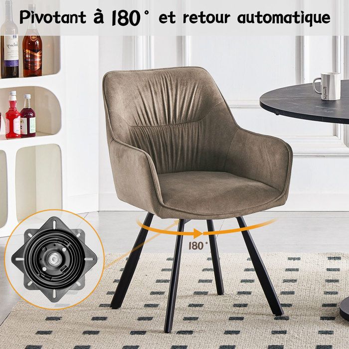 Le grand coussin et le dossier ergonomique vous procurent un siège confortable. Design raffiné des chaises salle à manger pivotantes]Chaises bouclette avec plateau rotatif métallique haute qualité pour rotation 360° silencieuse. Pieds métalliques à hauteur réglable, stables sur sol irrégulier et protègent des rayures 150 kg) ✔ Pattes réglables en hauteur ✔ Compatible avec tous les sols : moquette, parquet et autres surfaces Montage express en 5 minutes (3 étapes) pour une chaise stylée et ultra-résistante! Elle convient comme chaise de coiffeuse,fauteuil ou chaise pour salon,et même comme chaise coquillage. La conception perforée empêche la saleté de s'accumuler dans les interstices de la chaise,rendant le nettoyage des chaises de salle à manger plus facile. 【Style polyvalent】Dimensions de la chaise:42*45*81cm. WAFTING Chaise de salle à manger en velours est douce, agréable pour la peau, respirante et antiabrasive; Grâce à la plaque pivotante en métal, le siège de la chaise peut pivoter librement et en douceur à 180°; La capacité de charge statique est jusqu'à 150 kg Dossier ergonomique avec soutien confort WAFTING Lot de 6 Chaise de Salle à Manger en Velours,Chaise Chaise Salon Salle à Manger WAFTING Lot De 6 Chaises De Salle à Manger Pivotantes Avec Accoudoirs Chaise Coiffeuse 【Design raffiné des chaises salle à manger pivotantes】Les chaises bouclette sont équipées d'un plateau pivotant renforcé et d'une structure à ressort de haute qualité, offrant une rotation fluide à 180° et une fonction de retour automatique. Coussin de siège de 7,5 cm d'épaisseur - pour un confort d'assise maximal Fauteuil bien-être haut de gamme pour intérieurs exigeants ✔ Dimensions coussin : 43 cm (L) x 49 cm (P) x 7,5 cm (H) ✔ Mousse à mémoire de forme : Maintien optimal même en utilisation intensive ✔ Accoudoirs en velours côtelé : Douceur et élégance Chaise pivotante multifonction L'art de vivre à la perfection: ✔ Design équilibré pour toutes les pièces ✔ Crée une atmosphère harmonieuse ✔ Confort et élégance réunis ✔ Pour : salle à manger • salon • salle de réunion • chambre 1 Beige 2 Khaki 3 Gris 4 Noir 【Coussins de qualité supérieure】Les chaises salle manger ont des coussins et dossiers en mousse mémoire ultra - épaisse et haute - densité,résistants à la déformation.
