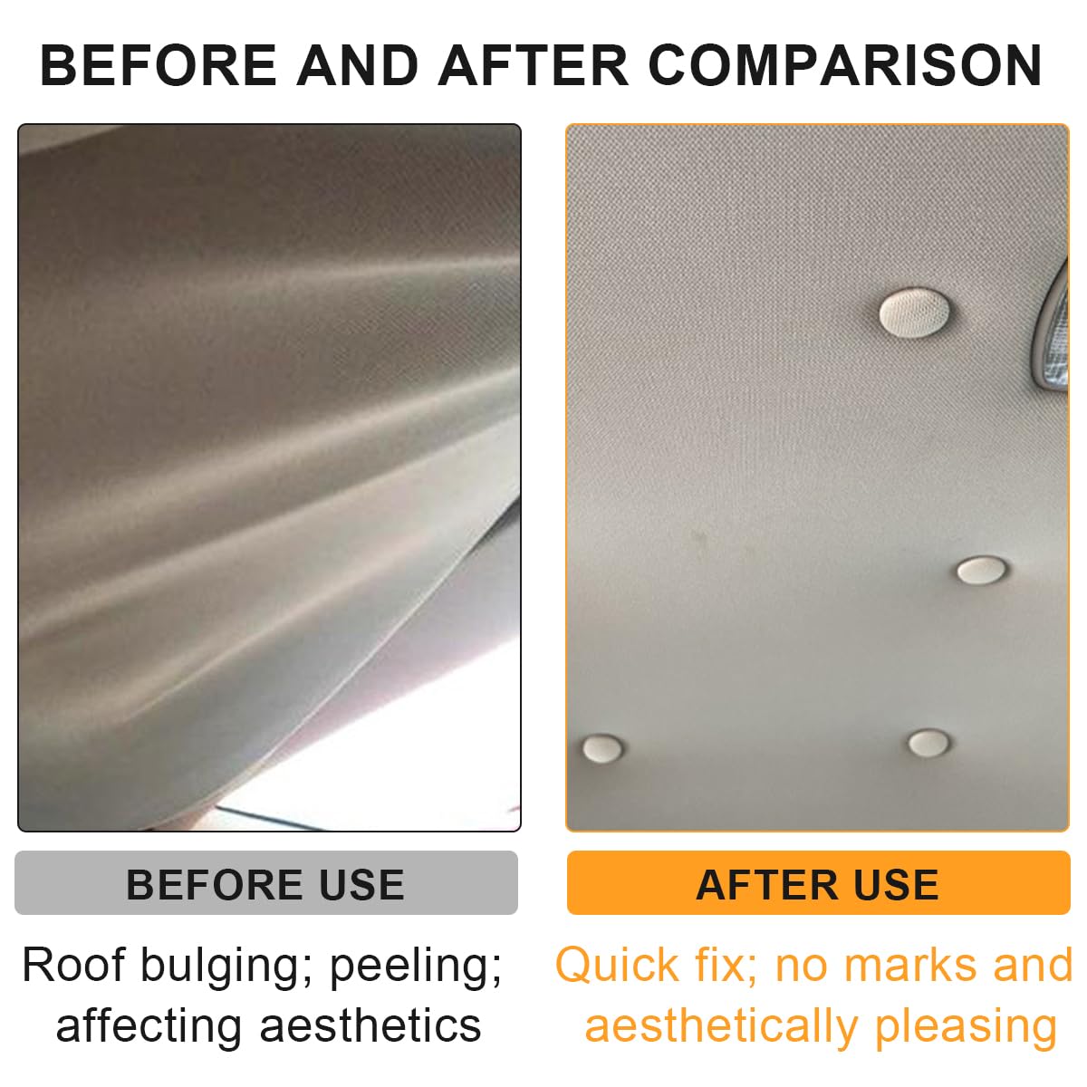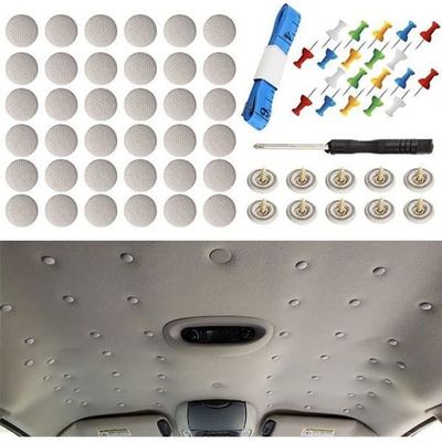 Boutons Pression Ciel Voiture Fixation Plafonnier LOT DE 60 Boutons De Réparation Universels Pour Toit De Voiture En Colle Ciel De Toit Auto Kit Rivets Universels Toit Panoramique Il ne prendra pas beaucoup de temps et ni besoin d'outils professionnels. Rivets,Ensemble de boutons de décoration Artisanat, pierre turquoise... Rivets universels pour réparation de toit de voiture : ils sont universels pour les voitures. Nous l'avons essayé sur des milliers de voitures et n'avons trouvé aucun problème, il doit donc s'adapter à vos voitures préférées Outils pour réparer le ciel de la voiture: 60 boucles de ciel de voiture et 60 boutons avec des épingles colorées, un tournevis et un ruban. Remarque : si les bords du ciel tombent, utilisez la colle sur le bord et utilisez ensuite les rivets pour le ciel pour le réparer. Lot de 60 boutons de fixation universels pour toit de voiture - Avec Distance d'installation (recommandée) : environ 12-15 cm entre chaque bouton. Q: Combien de pièces faut-il pour une voiture ? R: 40pcs pour voiture avec toit panoramique. Caractéristiques : Longueur de vis: environ 1 cm. 1 tournevis (couleur aléatoire) 1 mètre ruban (couleur aléatoire) Diamètre : environ 2 cm. Matériau durable : fabriqué en tissu maillé, la couleur est très similaire à celle du ciel de votre voiture, avec un revêtement spécial qui empêche les rivets de se rouiller. Aucun autre outil n'est nécessaire et n'endommagera pas votre véhicule d'origine. 60 pièces pour voiture sans toit panoramique, la distance entre chaque rivet est de 13 cm.