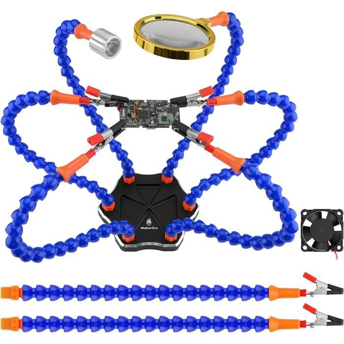 Grâce à cet outil, vous aurez les deux mains libres pour souder pendant que la tête en cuivre s'appuiera sur le trou. - Le support magnétique solide fixe la tête pivotante réglable en cuivre de 32 mm/1 1/4" de diamètre contre le trou Matériaux de qualité supérieure : le bras magnétique en métal est fabriqué en métal souple et solide. Troisième Main Soudure Lot De 12 Soudures Avec Pied Magnétique Aide Soudure Base Aimantée Parfait comme aide à la soudure, troisième main lors de la soudure ou du support de carte. Protection de sécurité : les pinces crocodiles de troisième main équipées de coques de protection en caoutchouc empêchent efficacement les rayures sur les surfaces polies des bijoux ou des courts-circuits sur les circuits imprimés, offrant ainsi un environnement de travail sûr et fiable. Aide à la soudure, soudage à la troisième main, support de platine Masque de soudure à main CLIMAX Troisième main à la plateforme X4 Il s'agit d'une surface verticale ou horizontale qui peut être fermement adsorbée et vous pouvez l'utiliser en toute confiance Qu'il se plie, s'étire ou s'adapte à la forme, il peut être facilement ajusté à vos besoins à différents angles et hauteurs. Rotation à 360 degrés : le bras en col de cygne en métal réglable et le crocodile de précision mesurent 28,5 cm de long et peuvent être tournés à 360 degrés.