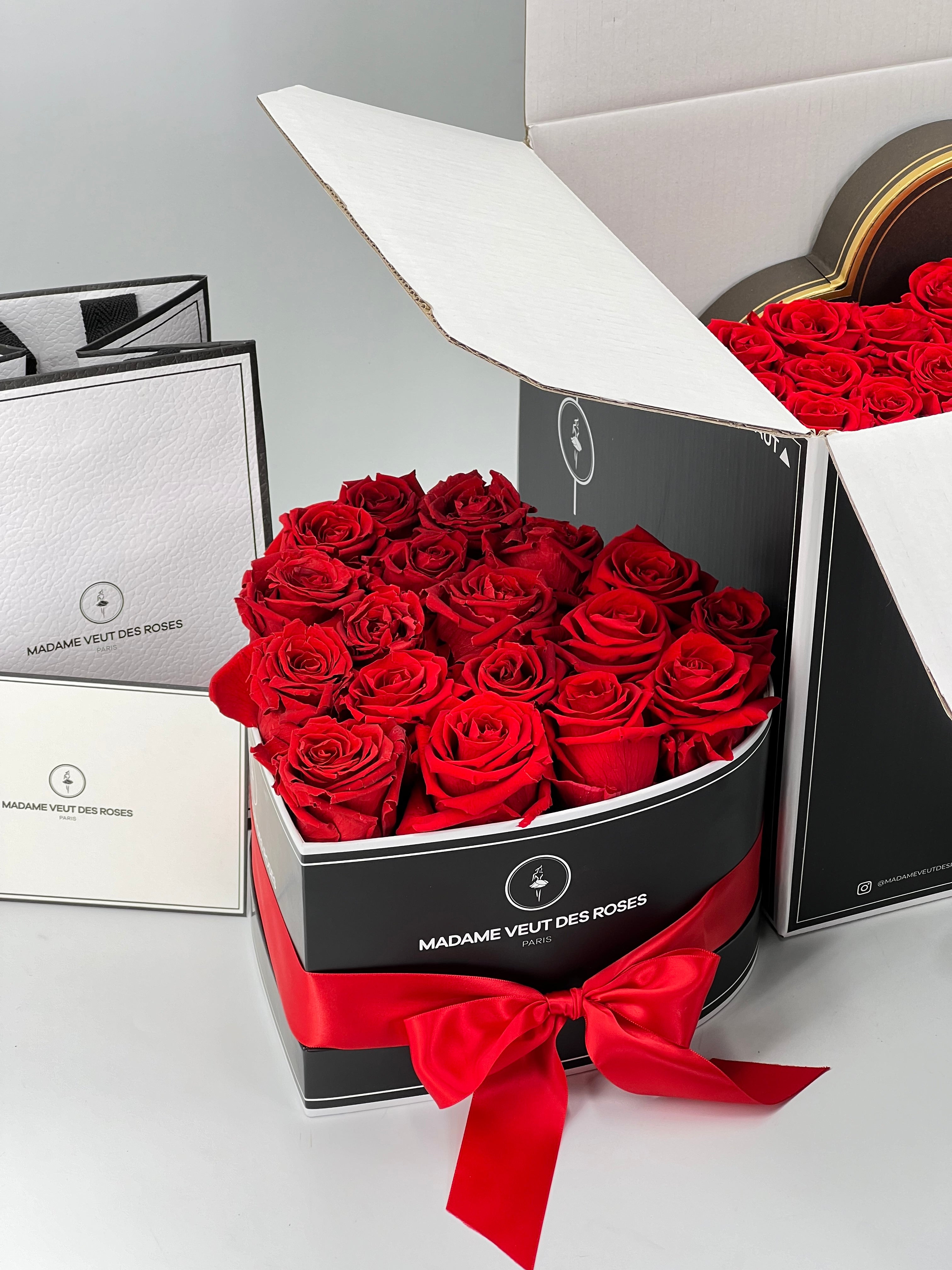 En soulevant le couvercle de l'élégante boîte à chapeau Amoroses et en découvrant les couleurs exaltantes des roses, vous vivrez des émotions inoubliables. 12 est le nombre parfait, représentant l'équilibre entre passé et futur, l'accomplissement d'un cycle complet et la force des liens durables. ROSES PRÊTES À ÊTRE EXPOSÉES Carton à chapeau Amoroses contenant 12 roses stabilisées L'Eternelle Rose | N°1 des sites de roses éternelles et flowerbox – L'Eternelle Rose - Rose éternelle et flowerbox Ces boîtes à chapeau sont un hommage au design italien, méticuleusement réalisées pour sublimer l'élégance des roses. AMOROSES PRESTIGE: L'ÉLÉGANCE À L'ÉTAT PUR DANS DES BOÎTES À CHAPEAU FAITES MAIN Boîte à roses éternelles fuchia 🖤 INODORE ET ANALLERGIQUE - Grâce aux roses Amoroses, les personnes allergiques pourront recevoir des fleurs., Produit 100% naturel. En commandant ce produit, vous recevrez : Boîte d'emballage Qu'est-ce qui distingue les produits Amoroses des autres ? Le design italien, célébré dans le monde entier, orne les musées d'objets emblématiques. Chaque composition est rigoureusement réalisée à la main, de la fabrication des supports à l'assemblage des roses stabilisées, et reflète l'art de l'artisanat italien, synonyme de tradition et d'innovation. ÉTAPE 3 À vous de choisir ! Certificat d'originalité avec spécifications et numéro de lot Les roses Amoroses sont cultivées en Équateur et bénéficient de la certification Flor Ecuador , qui certifie des pratiques de production durables et le respect des travailleurs. Livraison Bouquet de roses éternelles - Madame Veut Des Roses 🖤 PRÉCIEUX - Outre l'attention portée à l'emballage, nous avons sélectionné les plus belles roses, d'un diamètre de 5-6cm pour faire de ce produit un cadeau unique. Roses équateur Certification Flor Ecuador Livraison Boite De Roses éternelles Rouges - LUVBOX PARIS Composition Fleurs Durée Années Seules les plus belles fleurs, une fois arrivées à maturité parfaite, subissent un processus de stabilisation spécial, réalisé exclusivement avec des produits naturels, pour devenir des roses Amoroses Plus que n'importe quelles roses stabilisées !, 12 roses évoquent l'harmonie, la passion et une beauté intemporelle. En retournant le couvercle, vous pouvez l'insérer dans la base du porte-chapeaux Ce ne sont pas seulement des cadeaux, mais un geste d'amour, un message d'affection et de reconnaissance. Cette technique préserve chaque pétale dans toute sa perfection, transformant un élément naturel fugace en un symbole éternel de beauté et d'amour. ÉTAPE 1 Soulevez délicatement le couvercle et découvrez les 12 roses rouges parfaitement ordonné. Les matériaux utilisés ont été sélectionnés pour leur très haute qualité. Les roses stabilisées Amoroses sont de véritables fleurs qui durent des années, conservant leur beauté grâce à un processus spécial de préservation des fleurs. Chaque rose est soigneusement sélectionnée, chaque étape réalisée à la main. 🖤 CADEAU PARFAIT - Offrir des fleurs n’est jamais démodé. Un cadeau spécial, idéal pour le partenaire, mais aussi pour les amis, la famille et les connaissances.