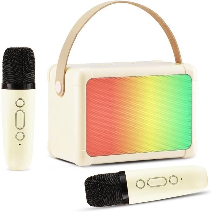Une lumière rouge clignotante vous rappelle de recharger. Enceinte Enfant Karaoké Enfant Trendix Golden Star - Enceinte Bluetooth Avec 2 Micros, Support Téléphone Et Radio FM - Cadeau 5-14 Ans Kit Karaoké Portable Portable et longue durée de travail: Système de karaoké très portable avec poignée de transport supérieure. Vous pourrez facilement l'emporter partout, en camping, à la plage, en pique-nique, ce ne sera pas un fardeau pour vous. Fabriqué en métal de haute qualité et pèse 2,88 kg - 1 mode d'emploi (français non garanti) Un excellent microphone avec haut-parleur pour les fêtes et les voyages. Très amusant pour les enfants et les adultes pour chanter et jouer. - 1 câble de charge double. Idéal pour les garçons et les filles de tous âges pour briller lors de réunions de famille ou d'amis. Informations sur les spécifications : - Plage de réponse en fréquence : 80 Hz - 20 kHz. Machine Karaoké Portable Cadeau Anniversaire JAMELO - Enceinte Bluetooth 40W Avec 2 Micros - Lumières RGB - Pour Fêtes Et Famille Micro Bluetooth Sans Fil Machine Karaoké Portable Enfants Adultes Un processeur numérique offre un son 3D clair et riche qui fait briller chaque performance, idéal pour chanter et rire. Magasinez des Karaoke Machines & Equipment aux meilleurs prix sur le marché au . Parcourez notre vaste sélection de instruments-de-musique aux bas prix de tous les jours. Magasinez les produits que vous recherchez chez Canada Connexion Bluetooth - Facile à utiliser : allumez la mini machine de karaoké, appuyez sur M pour connecter votre téléphone ou votre ordinateur via Bluetooth. Cadeau de fête parfait : cette mini machine à karaoké 2 microphones est ultra-compacte et prête à l'emploi. - Distance de service : 10 m. Un ensemble de haut-parleurs et de microphone puissants pour s'amuser en famille. Utilisez-le avec notre microphone chantant pour une expérience complète. Batterie longue de 8 heures : avec une batterie rechargeable de 3600 mAh, cette machine de karaoké fonctionne jusqu'à 8 heures. Le micro de karaoké sans fil se connecte automatiquement, il suffit de l'allumer! - Dimensions du produit : 11,8 x 18,3 x 11,8 cm., - Poids : 850 g.