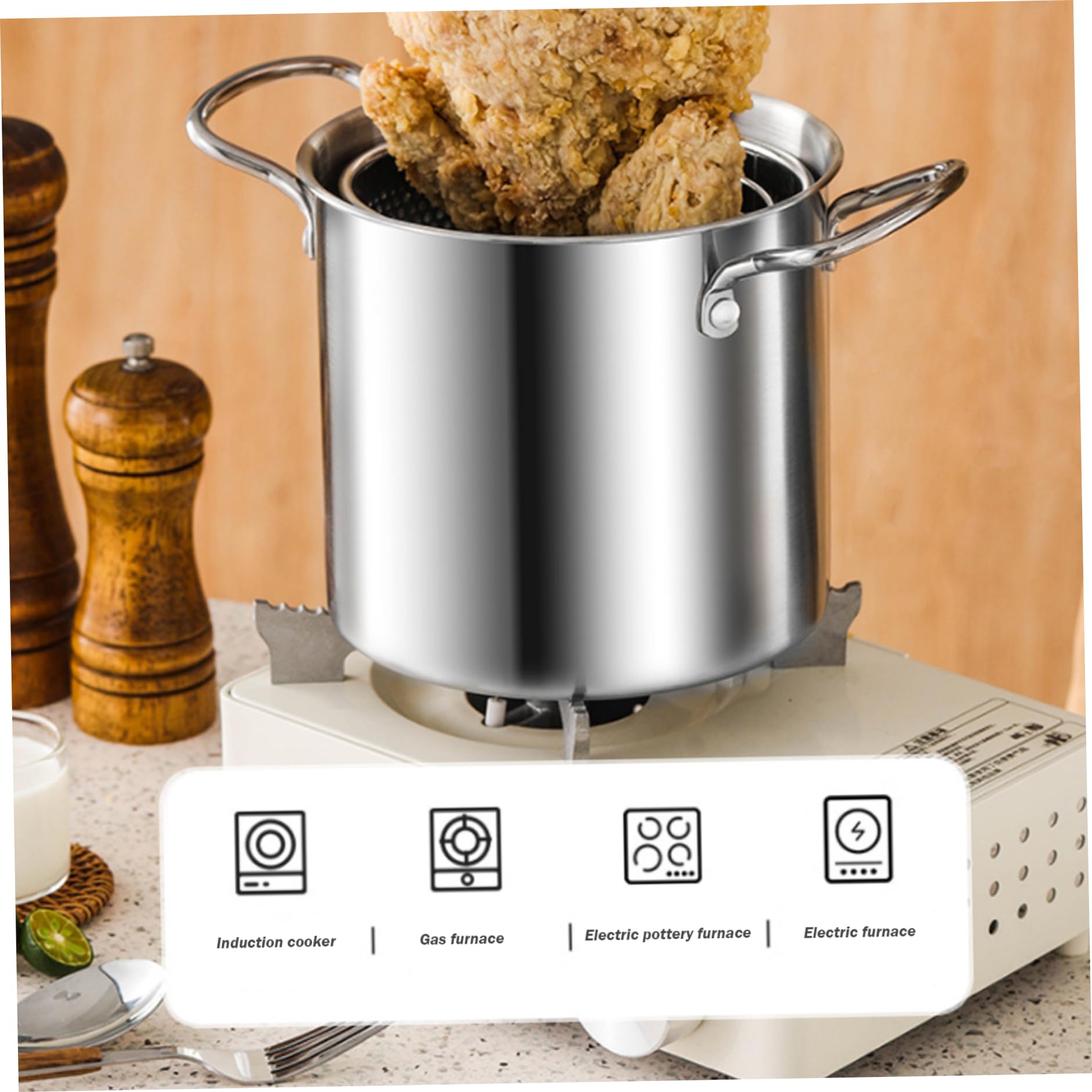 Conception compacte: Mesurant 17,5x24,5 cm (6,89x9,65 pouces), ce pot de friteuse est parfait pour les petites cuisines, les dortoirs ou les VR., ., Il est léger mais assez spacieux pour accueillir divers ingrédients pour la friture ou l'ébullition., ., Le pot dispose de poignées qui offrent une poignée confortable et fraîche, assurant une manipulation sûre pendant la cuisson. Description: fabriqué à partir de l'acier inoxydable de qualité alimentaire, l'intérieur du pot de friteur favorise une meilleure santé et une meilleure nutrition., ., Le panier de friteux inclus ajoute une polyvalence, vous permettant de préparer de délicieux aliments frits pour compléter vos repas., ., Le panier et le couvercle à frire amovibles sont également sans danger pour une commodité supplémentaire, ce qui rend le nettoyage un jeu d'enfant après la cuisson., ., Disponible en finitions mates et miroir, ce pot dispose de poignées entièrement en acier, d'un couvercle transparent et d'une base renforcée pour des performances améliorées., ., Fonctionnalités:., ., Pot de friture., ., -Color: Silver., ., -Material: 304 en acier inoxydable., ., -Size: comme indiqué., ., Remarque: Mesure manuelle, veuillez laisser de légères erreurs sur la taille., ., Les couleurs peuvent exister une légère différence en raison de différents écrans., ., Package comprenant 1 * Pot de friture 1 * Filtre Cuisine multifonctionnelle: Notre mini ensemble de pot de friteuse est parfait pour diverses tâches de cuisson, y compris la friture, les pâtes bouillantes, la cuisson des spaghettis, la fabrication de ragoûts, les œufs bouillants, les crevettes de friture et la création de frites croustillantes., ., C'est un ajout polyvalent à n'importe quelle cuisine. Ustensile Induction Compatible Panier Friture 16cm Panier à Frites Inox 16cm - Passoire Cuisine - Pour Friture, Pâtes, Légumes Panier Frites Panier Friteur Amovible Poêle à frire en gros en acier inoxydable avec un panier durable et perforé pour faciliter l'écoulement de l'huile. Ce produit polyvalent peut être utilisé pour la friture ou comme marmite à soupe VEVOR arite Traiteur 39,7 L Faitout avec Couvercle et Poignée... Passoire à huile en acier inoxydable avec panier à frire, pot de filtre