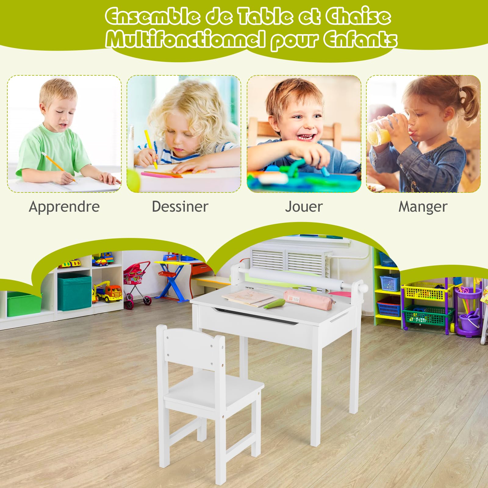 Grâce à sa forme simple, elle s'intègre parfaitement dans n'importe quelle ambiance de salon ou de chambre d'enfant. Bureau extensible pour enfant Skellefteå 60 x 38 x 51,5 cm rose [en.casa Lorsqu'elle n'est pas utilisée, l'extension peut être facilement repoussée. Plateau extensible pratique : Le bureau pour enfants est doté d'un plateau extensible qui permet de gagner de l'espace pour les jeux créatifs, le bricolage ou les projets d'apprentissage, tout en étant facilement rétractable lorsque non utilisé. Sa finition naturelle avec des touches de vert menthe apporte une touche de modernité tout en restant facile à entretenir. Extension De Bureau Bureau Informatique - Bureau D'ordinateur - Table D'étude Avec Pieds En Fer Bois De Récupération Meuble Chambre Enfant Ergonomique Avec sa hauteur adaptée aux enfants, elle offre aux petits artistes et aux explorateurs une surface de travail et de jeu optimale. Sécurité et stabilité optimales : Grâce à ses six pieds stables et à ses coins arrondis, ce bureau assure une excellente stabilité tout en réduisant les risques de blessures pendant l'utilisation. Matériaux de qualité et finition soignée : Fabriqué en bois de pin et MDF, ce bureau est à la fois durable et léger. Points forts :- table pour enfants avec plateau extensible pour plus d'espace si nécessaire. Table à manger rectangulaire extensible à lamelles style loft – 180 à - utilisation polyvalente pour jouer, peindre ou faire ses devoirs- idéale pour les petits espaces grâce à son design peu encombrant- six pieds de table stables pour une stabilité maximale- les coins arrondis minimisent les risques de blessures- hauteur adaptée aux enfants pour un travail et des jeux ergonomiques- entretien facile - montage rapide et facileDimensions :- table à l'état replié (longueur x largeur x hauteur) : 60 x 38 x 51,5 cm- total avec plateau étendu (longueur x largeur x hauteur): 98 x 38 x 51,5 cm- surface du plateau de table étendue (longueur x largeur) : 38 x 27,5 cm- hauteur du plateau de table étendu : 47 cm Matière :bois de pin + MDFCouleur :naturel / vert mentheContenu de la livraison :1 x bureau extensible pour enfantsProduit de la marque :[en., casa] Miroir Mural 76,5X56cm avec Cadre en Métal Noir, Miroir Salle de Bain...