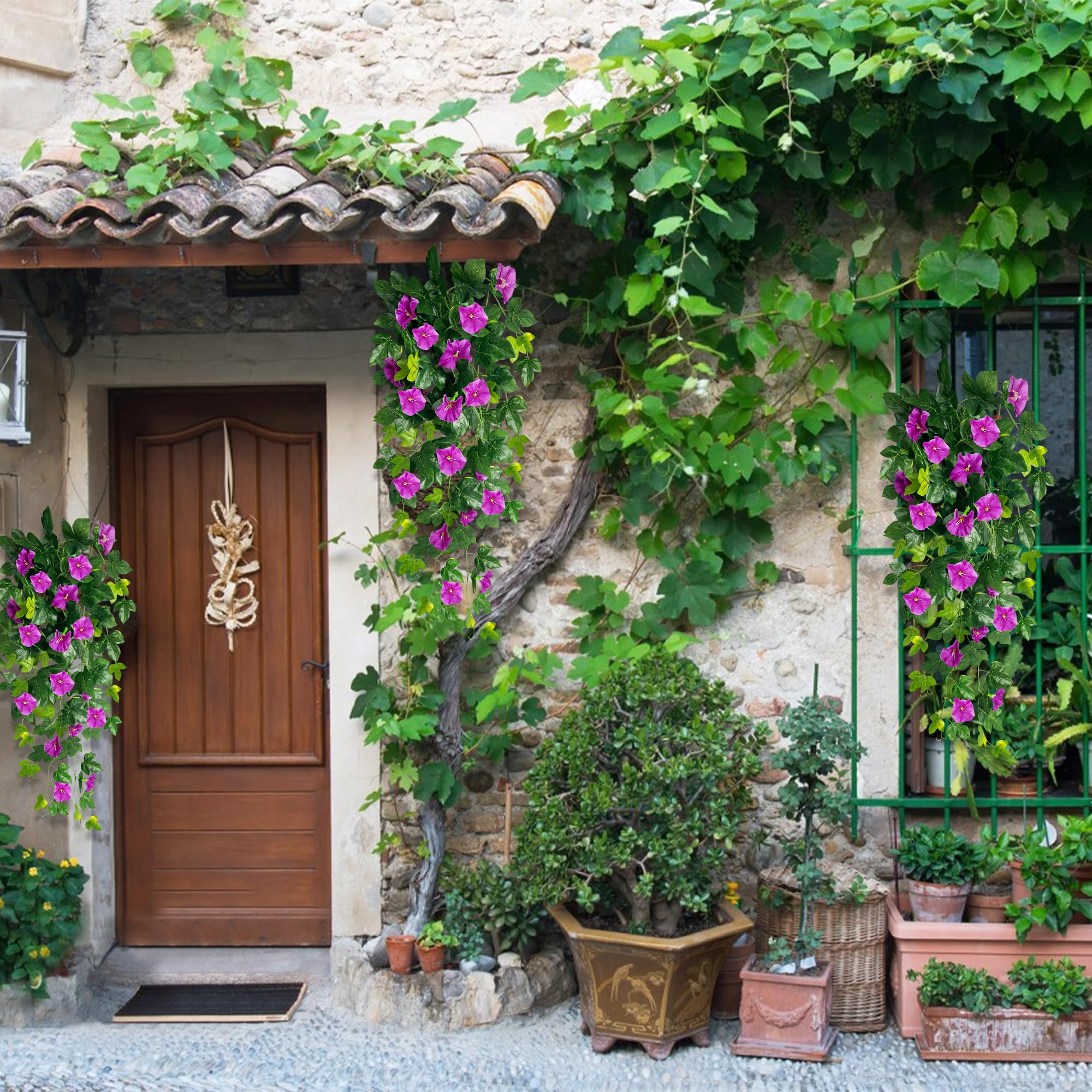 Idéal pour les personnes à la recherche d'un arrangement floral facile à entretenir, mais impressionnant. Les fleurs artificielles ne nécessitent aucun entretien, ne perdent pas leurs fleurs et conservent leur couleur intense tout au long de l'année. Plantes artificielles suspendues : plantes vertes artificielles suspendues avec différentes branches de différentes longueurs. La longueur totale des vignes artificielles est d'environ 75 cm Les plantes artificielles résistantes aux intempéries sont idéales pour les suspensions de fleurs, les jardinières de balcon ou comme décoration suspendue à l'intérieur et à l'extérieur Contenu de la livraison : plantes artificielles suspendues composées de 2 plantes suspendues luxuriantes d'une longueur de 76 cm chacune pour une décoration généreuse Lot de 2 fleurs artificielles suspendues, faux ipomées avec Facile d'entretien : la plante artificielle suspendue n'est pas nécessaire d'arroser ou de couper, conserve sa belle forme et sa couleur intense tout au long de l'année Plante artificielle suspendue - Plantes artificielles suspendues - Fleurs artificielles suspendues - Fleurs artificielles à suspendre - Pour l'extérieur - Plantes de balcon artificielles Décoration Balcon Plantes Artificielles Plantes Suspendues Artificielles 10 Pièces, Fleurs Artificielles Blanches, Décoration De Lierre Décoration Automne Balcon Terrasse Plantes Fausses Les matériaux robustes résistent au vent et aux intempéries, ce qui vous permet de profiter longtemps de la plantation décorative. Ces plantes artificielles suspendues trompeuses artificielles dans un charmant dégradé de rose et violet apportent une touche de magie florale durable sur votre balcon ou votre terrasse. Les plantes artificielles résistantes aux intempéries sont idéales pour les suspensions de fleurs, les jardinières de balcon ou comme décoration suspendue à l'intérieur et à l'extérieur.