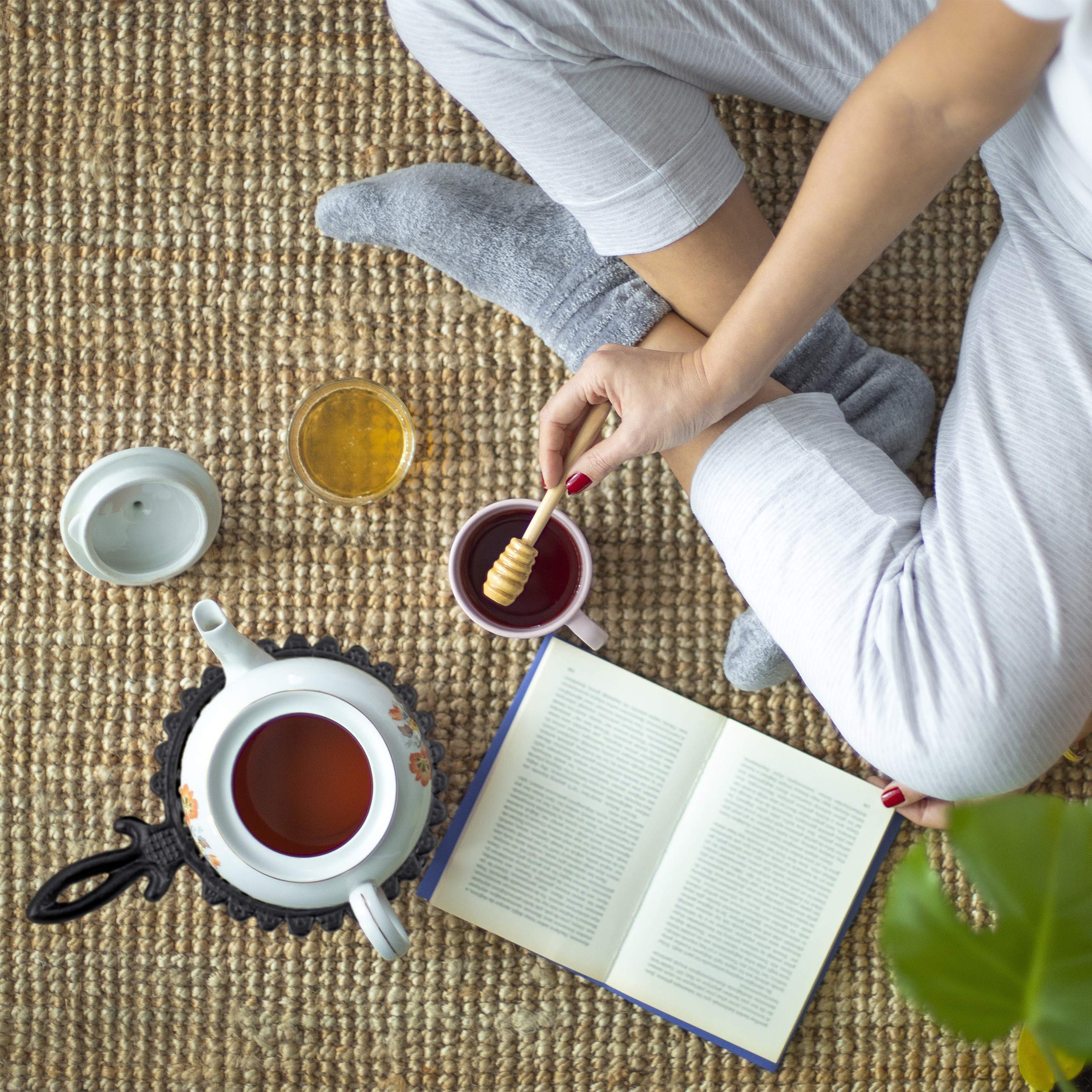 Matériau : fonte de fer , Couleur : gris 10 ans d'excellence d'entreprise Fabriqué en fonte de fer de qualité lourde, le réchaud offre une grande stabilité, empêchant tout basculement accidentel de votre précieuse théière ou cafetière. Livraison sans objets de décoration Chauffe-théière en fonte Conçu spécialement pour les amoureux de thé et de café, ce chauffe-théière vous garantit des boissons toujours à la température parfaite, jusqu'à la dernière goutte. Vintage Oneida USA Silver Plate Théière Rétro Cafetière France Design ornemental vintage en gris Remarque : Laissez refroidir le réchaud après utilisation avant de le toucher. Support avec emplacement pour une bougie chauffe-plat Apportez une touche d'élégance à vos parties de thé avec ce superbe chauffe-théière au design antique. Conçu spécialement pour les amoureux de thé et de café, ce chauffe-théière vous garantit des boissons toujours à la température parfaite, jusqu'à la dernière goutte Chauffe-théière Fonte Relaxdays Chauffe-théière En Fonte, Pour Cafetières Et Théières, 1 Bougie, Design Antique, Réchaud Rustique, Gris - Maison Réchaud à Bougie Thé Café Dimensions H x D : env., 7,5 x 17 cm , Poids : env., 1,1 kg Respect des standards européens Repose théière en fonte noire D13cm | Théières / Cafetières | Pier Import Large variété de produits Réchaud en fonte pour théière Pour garder le thé et le café chauds pendant longtemps Relaxdays est une entreprise de e-Commerce au cœur de l'Europe spécialisée dans l'aménagement d'intérieur. Détails : réchaud pour théière en fonte de fer robuste - Dimensions HxD : env., 7,5 x 17 cm