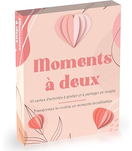 Liste des produits: 1 boîte * Carte en couple (50 pièces) Note: En raison de différents paramètres d'éclairage et d'écran, la couleur de l'élément peut être légèrement différente de l'image. Leur taille compacte facilite leur rangement dans un sac, les rendant parfaits pour des parties improvisées en déplacement ou lors de soirées détendues. Caractéristiques: Taille de la carte: environ 6,4 cm x 8,9 cm / 2,52 x 3,51 pouces Matériel: papier Emballage: boîte actuelle exquise, pratique pour le stockage et le transport Applicable à: Couples mariés, amoureux Convient aux scénarios suivants: Vie quotidienne: Après le dîner ou le coucher, les couples peuvent aspirer des cartes ensemble pour interagir. Ces jeux légers et portables sont conçus pour être faciles à ranger tout en restant fonctionnels pour un plaisir ininterrompu., Idéal pour les Adaptés aux adultes, ces jeux constituent des outils idéaux pour susciter des conversations amusantes lors de soirées en amoureux ou d'occasions familiales. Cadeau Couple Fun Roulette Coquine Pour Couples - Jeu De Positions Intimes - Cadeau Original Pour Soirée Romantique Jeu De Carte Kama Sutra Outil de Rafraîchissement Quotidien : Ce set de jeux favorise une interaction intéressante entre couples, transformant des conversations ordinaires en échanges vibrants pleins de surprises et d'amusement tout en revitalisant les relations grâce à des invites conversationnelles innovantes Leur format compact s'adapte parfaitement à un sac, une utilisation pratique lors de diverses occasions comme les voyages ou les sorties en plein air. Quand il s'agit de passer du temps de qualité avec ton partenaire, rien ne vaut une bonne soirée jeux de cartes ! Que vous soyez un couple old-school ou un duo moderne, il y a un jeu de cartes pour chaque couple. On a testé plus de 20 jeux différents pour te proposer les meilleures options pour tous les types de couples Jeu Interaction Couple 50 Cartes Questions Jeu De Cartes Pour Couples Risky, Conversations Réfléchissantes, Jeu De Société Pour Rendez-Vous, Nuit, Anniversaires, Reconnection Couple, Noir Jeu Couple 2 Minutes De Bonheur Fêtes spéciales: Dans des occasions importantes telles que les anniversaires de la Saint-Valentin et de mariage, utilisez ces cartes pour exprimer l'amour et la gratitude. Un choix judicieux pour ceux qu Meilleurs jeux de cartes pour soirées entre amis : top sélection hilarante Explorez des jeux de cartes divertissants conçus pour insuffler humour et romantisme dans votre relation tout en encourageant une intimité plus profonde. En raison de différentes mesures manuelles, veuillez permettre une différence de taille de 1 à 2 cm. Expérience de Jeu Captivante Les jeux de cartes pour couples favorisent des interactions intéressantes, transformant les conversations en moments pleins de surprises et d'amusement tout en insufflant naturellement une touche de fraîcheur à la vie quotidienne grâce à des dynamiques de jeu engageantes conçues pour renforcer les liens et le plaisir sans dépendre de facteurs externes Adapté à Plusieurs Contextes : Apportez de la lors de vos voyages vos rendez-vous ou vos repas familiaux avec un jeu de cartes conçu pour s'intégrer naturellement dans diverses situations tout en stimulant les connexions humaines de manière agréable et fluide
