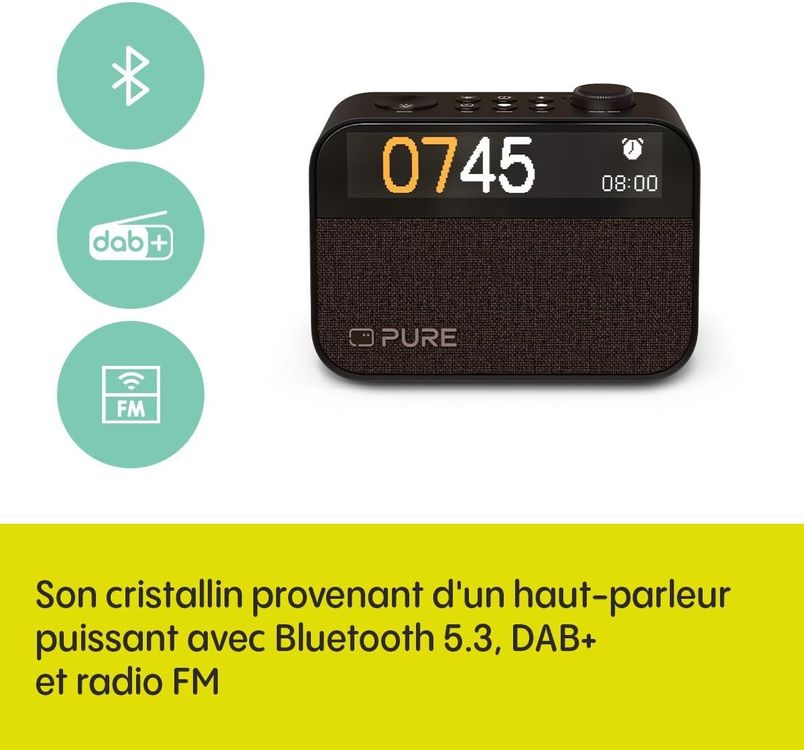 Radio Dab Plus TECHNIRADIO 40 - Réveil Radio Dab+ (Dab, FM, Réveil Avec Deux Temps De Réveil Réglables Radio De Chevet écologique Offre une réception d’une clarté exceptionnelle et un simple réglage numérique Radio-réveil DAB-FM facile à utiliser, écran géant, double réglage de l... Radio-réveil DAB /FM - Thomson Conception résistante aux éclaboussures, parfaite pour la salle de bain ou la chambre, sans soucis à proximité de l’eau DOUBLE ALARME ET MINUTERIE DE MISE EN VEILLE : réglez deux alarmes avec le volume progressif ou la radio. Promo Radio-réveil Dab+ Philips chez Expert RADIO NUMÉRIQUE FM/DAB+ : large choix de stations dont 40 présélections faciles à régler. Profitez d’un son clair et de fonctionnalités intelligentes avec cette radio-réveil compacte et résistante aux éclaboussures, parfaite pour toutes les pièces. Profitez d’une réception claire avec la radio numérique DAB+ et FM, ainsi que de 40 présélections pour accéder rapidement à vos stations préférées. SON CLAIR, RÉSISTANT AUX ÉCLABOUSSURES : amplification dynamique des basses pour un son riche. Conçue de manière responsable avec des matériaux recyclés et un emballage certifié FSC, cette radio est aussi un choix durable. Luminosité réglable facilitant la lecture de jour comme de nuit , CONNECTIVITÉ BLUETOOTH 5., 3 : diffusez des playlists, podcasts et plus depuis votre téléphone grâce à une connexion Bluetooth 5., 3 stable et transparente GRAND ÉCRAN LCD : écran net, grands chiffres, nom de l’artiste et de la chanson. Son design étanche aux éclaboussures (IPX4) permet une utilisation en toute sécurité près des lavabos ou des douches.