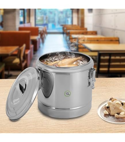Récipient Isotherme Pour événements HOP-110Pot De Soupe Pot à Soupe Avec Couvercle Et Poignées En Acier Inoxydable 308 X 165 Mm Récipient Isotherme Garde Au Chaud 12h Grande capacité de 10 l - Multifonction - Parfait pour la restauration d'événements : peut contenir 26 portions (300 ml) de soupe ou 40 tasses de café. Valeurs de laboratoire à une température ambiante de 22 °C Ouverture XL (Ø 29,5 cm) pour un remplissage et un versement faciles. Utilisation immédiate : utilisation directe sans montage – il suffit de remplir et de couvrir. Attention : ne convient pas aux plaques de cuisson Le design moderne argenté s'intègre dans n'importe quel décor de cuisine. Compatible avec les cuisines commerciales. Assemblage requis : non Type de montage : autonome Capacité : 10 l. Royalford Lot de 3 casseroles isothermes pour aliments chauds,Cocotte thermique,Plats de service isolés à double paroi avec couvercles, 1.6 L et 1.2 L,Beige Temps de conservation de la température : environ 12 heures Dimensions du colis : 32,5 x 30 x 30 cm. L'isolation en mousse PU maintient des températures 12h* stable : chaud (jusqu'à 75°C) pour les soupes/ragoûts, froid (moins de 10°C) pour le lait/cocktails Acier inoxydable 304 de qualité supérieure - Acier inoxydable 304 hygiénique (certifié LFGB) avec surface intérieure polie - Sans BPA, rouille et produits chimiques. Contenu de la livraison : 1 récipient à soupe isolé., 1 couvercle., Remarques : 1., Veuillez noter qu'il ne peut pas être utilisé sur les plaques à induction, les cuisinières à gaz, les cuisinières électriques, les cuisinières en verre, les cuisinières en céramique, les cuisinières halogènes et autres cuisinières., 2., Veuillez noter que ce produit ne contient pas d'aliments ou de liquides., 3., Les mesures étant prises à la main, les tailles indiquées peuvent varier de 1 à 3 cm. Nettoyage rapide et adapté à l'industrie : passe au lave-vaisselle (jusqu'à 70 °C) grâce au boîtier en acier inoxydable. Empêche les fuites même pendant le transport - Testé à 45 °. Poids à vide : seulement 3 kg - Transport facile aux fêtes/camping. L'isolation en mousse PU maintient des températures 12h* stable : chaud (jusqu'à 75°C) pour les soupes/ragoûts, froid (moins de 10°C) pour le lait/cocktails. Petits prix et livraison gratuite dès 25 euros d'achat sur les produits SuhoFutus. Commandez SuhoFutus Casserole isotherme de 10 l (avec couvercle), récipient à soupe isolé scellé avec couvercle et poignées, garde au chaud ou au froid pendant 12 heures, grande capacité, convient pour les Réduit les intervalles de recharge dans les cantines/hôtels. Idéal pour une utilisation commerciale (DIN 10509) et pour les familles.