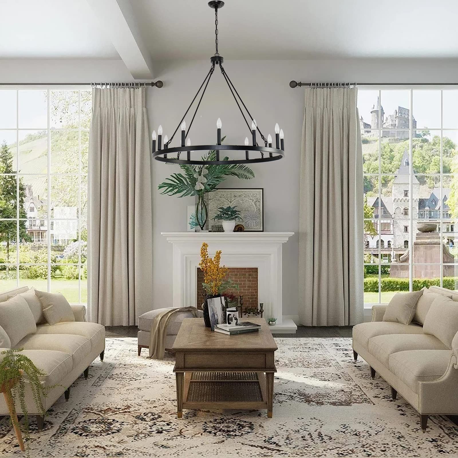 Lustre en verre clair en forme de roue de chariot, 12 lumières, style moderne du milieu du siècle, grand lustre doré/noir Installation facile : Notre lustre noir en forme de roue de chariot sera démonté en plusieurs parties lors du transport et devra être assemblé à la réception. Lustre Noir Style Ferme Lustre à Roues De Chariot De Style Bougie Noir à 12 Lumières, Lustre Lustre 12 Ampoules E12 La lampe roue de chariot noire s'intègre à une variété de styles d'intérieur. Si vous n'êtes pas satisfait du lustre en forme de roue de chariot, vous pouvez le retourner. Pour toute question, n'hésitez pas à me contacter. Description du produit La lumière noire pour roue de wagon complète une grande variété de styles de décoration d'intérieur Assorti à l'environnement domestique moderne et minimaliste, l'apparence est exquise et concise, mettant en valeur le goût. Style : rustique, industriel, moderne. Forme du luminaire : lustre. Type de pièce Lustre de Roue de Charette - Décoration Hauteur réglable : équipé d'une guirlande lumineuse réglable de 70,8 pouces de long, vous pouvez ajuster la hauteur de suspension de ce lustre à roue de chariot en fonction de votre scénario d'utilisation ou même l'installer sous le plafond en pente, qui est flexible et peut être utilisé dans une variété de scénarios. Service client : Garantie satisfait ou remboursé de 30 jours. Lustre en roue de chariot : lustre en roue de chariot noir, conception à 12 lampes offrant une couverture lumineuse à 360°, crée une atmosphère familiale chaleureuse, très approprié pour la salle à manger ou l'entrée de la maison