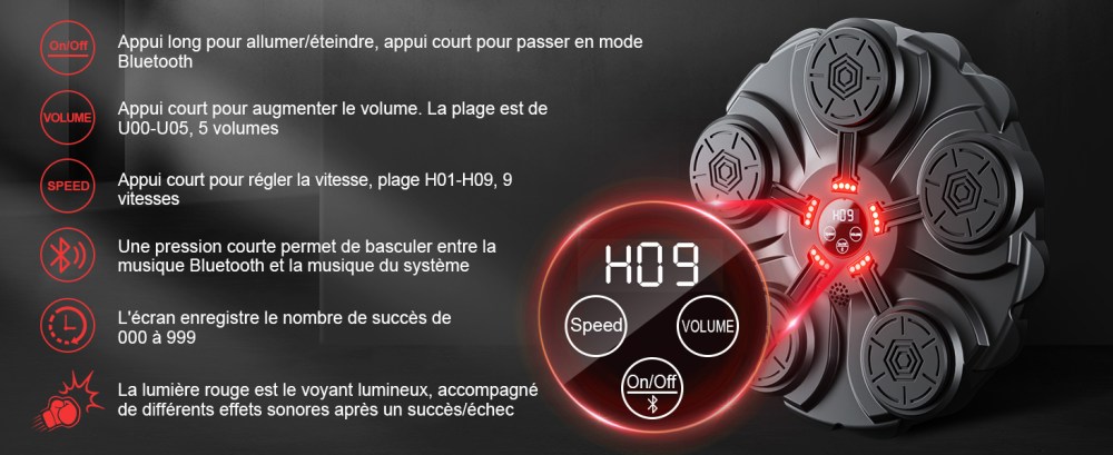 Appareil Fitness Maison Adulte Enfant Machine De Boxe Musicale ZEMBSOYA - Bluetooth, Réglable, Fixation Murale - Pour Fitness à La Maison Entraînement Boxe à Domicile