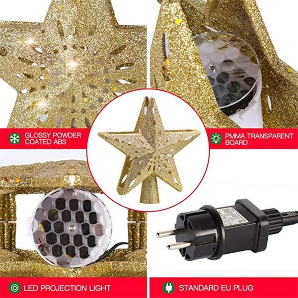 DÉCORATION DE NOËL MULTI-SCÈNE : qu'il s'agisse de la décoration de l'arbre de Noël de la famille, d'une surprise dans la chambre des enfants, d'une fête au bureau ou de l'atmosphère d'un café/restaurant, une lumière pour dévoiler toute la scène de l'expérience de Noël ! Projection Neige 3d Étoile Sapin Noël Projecteur Neige - Lumière Avec son design creux et son projecteur LED rotatif 3D intégré, elle projette des flocons de neige animés sur le plafond, créant une scène hivernale magique Aucune opération complexe n'est nécessaire, les personnes âgées et les enfants peuvent l'utiliser facilement. PLAGE DE PROJECTION RÉGLABLE : 0,9 mètre pour projeter 1,8 m² d'étoiles, 1,2 mètre pour étendre à 3,6 m² (données mesurées), plus les étoiles du sapin sont éloignées, plus le plafond est grand, plus la zone de projection est grande. Le rapport de projection en or est adapté à toutes les hauteurs de sol, le salon, la salle à manger et le magasin peuvent instantanément éclairer l'atmosphère de Noël Le rapport de projection en or est adapté à toutes les hauteurs de sol, le salon, la salle à manger et le magasin peuvent instantanément éclairer l'atmosphère de Noël. 6 PROJECTIONS FANTAISISTES DE NOËL : une touche permet de basculer entre les flocons de neige, le sapin de Noël, l'élan, le bonhomme de neige, le Père Noël et d'autres 6 scènes à thème, l'ensemble comprend 6 inserts de projection (1 pour la lumière supérieure, livré avec la lumière supérieure, et 5 pour le sac scellé), la lumière rotative dynamique et l'ombre couvrent 2-5 m² de plafond, créant instantanément une maison magique festive et immersive ! Haut De Sapin De Noel ROCK- Étoile Sapin De Noël 3D Projecteur LED Arbre Topper De Noël étoile Dorée Dynamique Pour Arbre